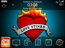 ตั้งค่าแบล็กเบอร์รี่ของคุณให้อยู่ในอารมณ์หวานด้วยการดาวน์โหลดธีม Love theme app ลงบนมือถือ แต่สำหรับใครที่ยังไม่ได้อยู่ในอารมณ์รัก ธีมมือถือเก๋ๆ อย่าง Love Stinks animation พร้อมให้คุณได้ “อิน” กับเทศกาลวาเลนไทน์
