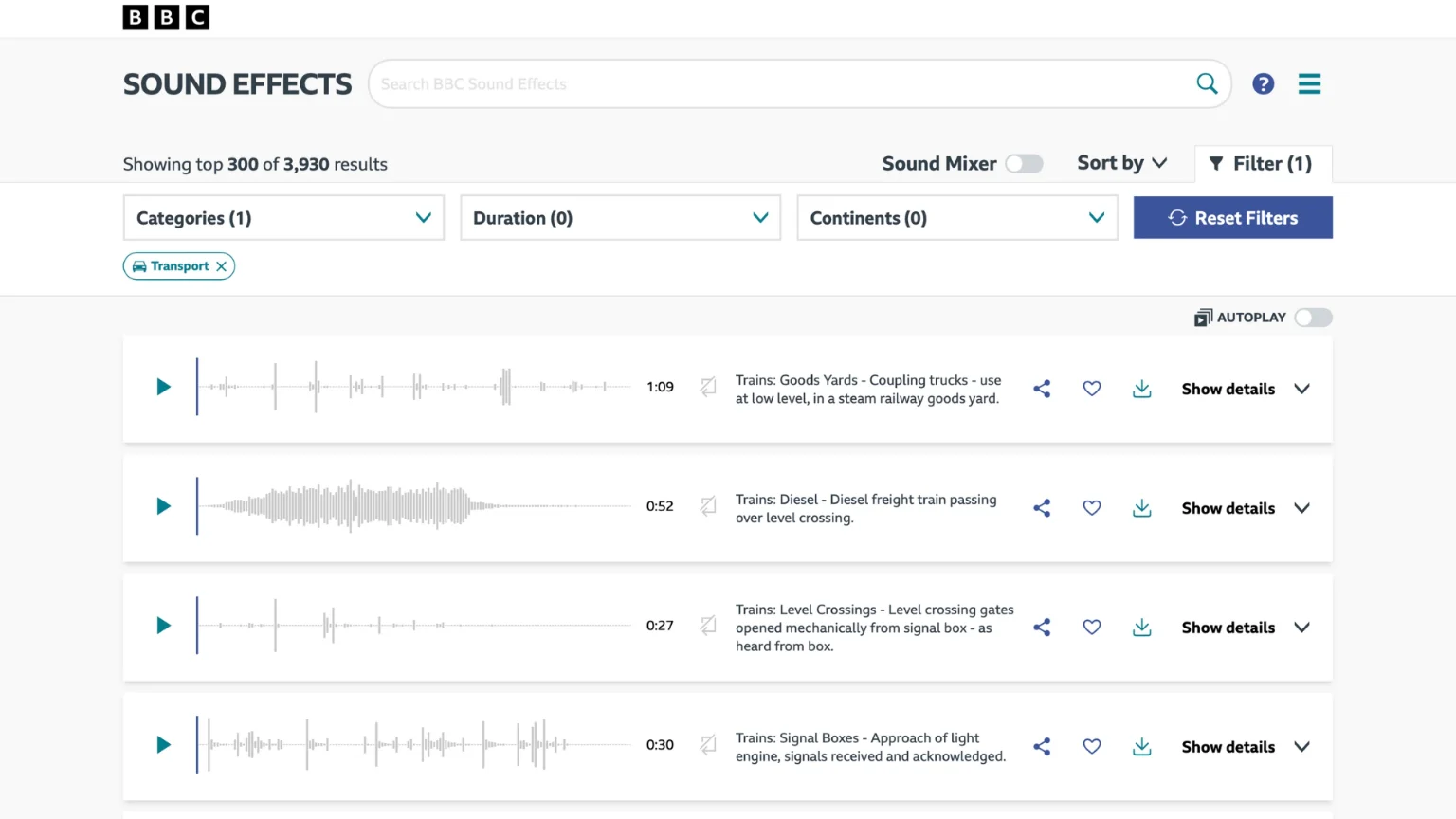 BBC ปล่อยเสียง Effect ทั้งหมด 30,000 รายการ จากคลังเสียงได้ ที่ทั้งไฟล์ WAV และ MP3 สามารถดาวน์โหลดฟรี