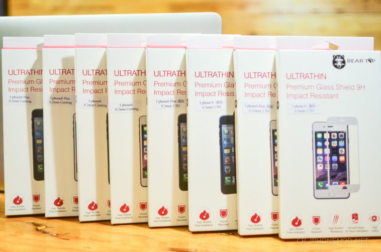 กระจกกันรอยจาก Bear Top ที่ได้นำมาทดสอบครั้งนี้มีทั้งหมด 2 รุ่นคือ 1. ความบาง 0.2mm และ 2. ความบาง 0.3mm แยกตามรุ่นสำหรับ iPhone 6, 6 Plus และแยกสีแล้วมีทั้งหมด 8 ตัวด้วยกัน ดังนี้