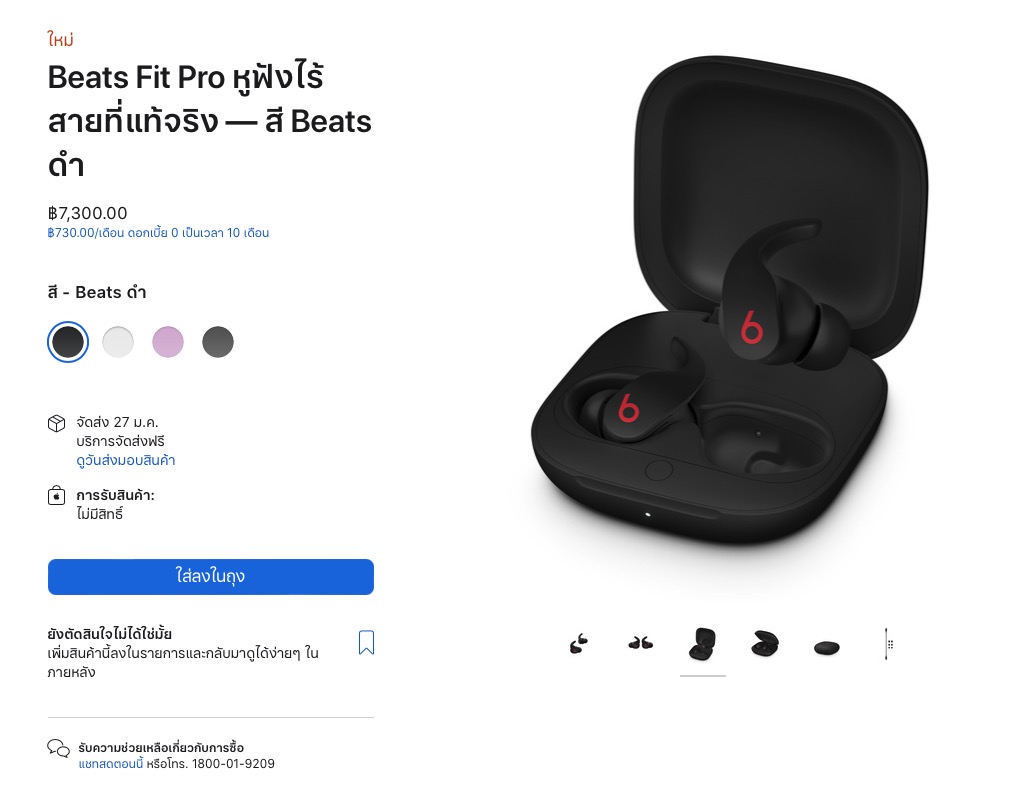 24 ม.ค. 65, Beats Fit Pro หูฟังไร้สาย ตัดเสียงรบกวน ANC ขายราคา 7,300 บาท กดซื้อได้แล้วที่ Apple Store Online, แอป Apple Store