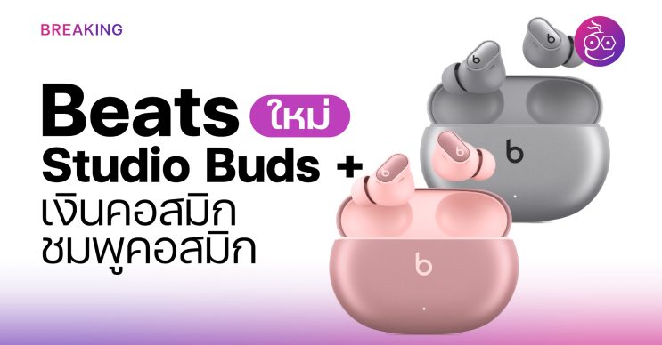 Beats Studio Buds + เพิ่ม 2 สีใหม่ สีเงินคอสมิก และสีชมพูคอสมิก เพิ่มเติมจากสีเดิมที่มีอยู่ได้ แก่ สีใส, สีดำทอง, สีขาวครีม ทำให้ตอนนี้มีสีให้เลือกซื้อกว่า 5 สี