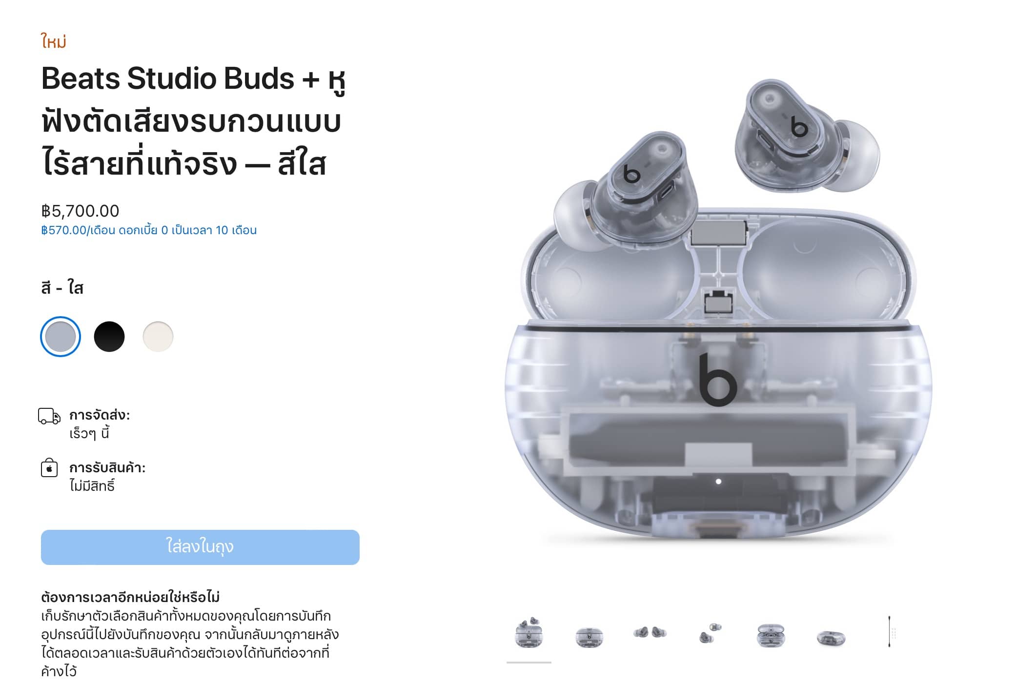 Beats Studio Buds + เปิดตัวเเล้วโดยอัปเกรดประสิทธิภาพจากตัวเก่าอย่าง Beats Studio Buds เเละด้านการออกเเบบมาพร้อมกับ 3 สีใหม่ คือ สีใส, ดำ/ทอง, ขาวครีม
