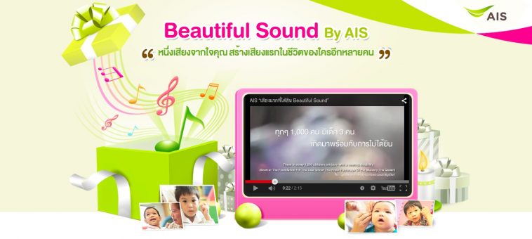ใกล้เข้ามาแล้วนะครับสำหรับช่วงเทศกาลปีใหม่ หลังจากที่ทุกคนได้รับของขวัญและคำอวยพรกันจนเต็มที่แล้ว ก็ถึงเวลาที่เราจะมอบความสุขให้กับคนอื่นบ้าง และงานนี้ AIS ก็ขอเชิญชวนทุกท่านมาร่วมทำบุญโดยไม่ต้องเสียเงินซักบาท “หนึ่งเสียงจากใจคุณ สร้างเสียงแรกในชีวิต ของใครอีกหลายคน”