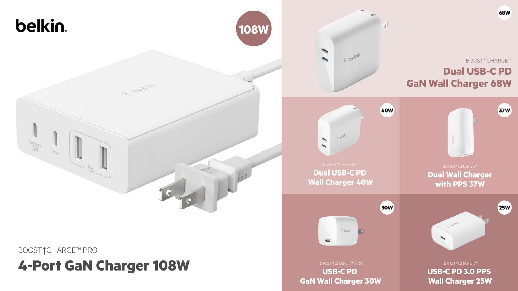 - Belkin BOOST↑CHARGE™ PRO 4-Port GaN Charger 108W