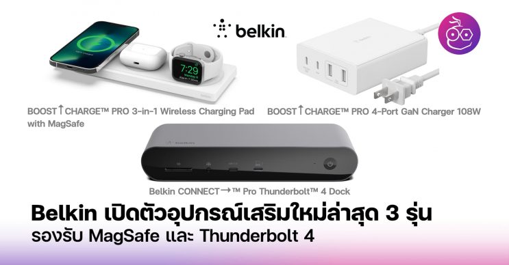 ล่าสุดประเดิมต้นปีด้วยการเปิดตัวอุปกรณ์เสริมใหม่ 3 รุ่น คือ Belkin Belkin BOOST↑CHARGE™ PRO 3-in-1 Wireless Charging Pad with MagSafe, BOOST↑CHARGE™ PRO 4-Port GaN Charger 108W และ Belkin CONNECT→™ Pro Thunderbolt™ 4 Dock
