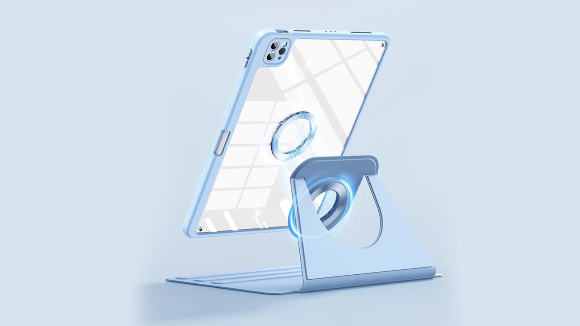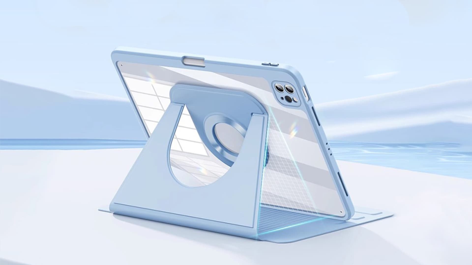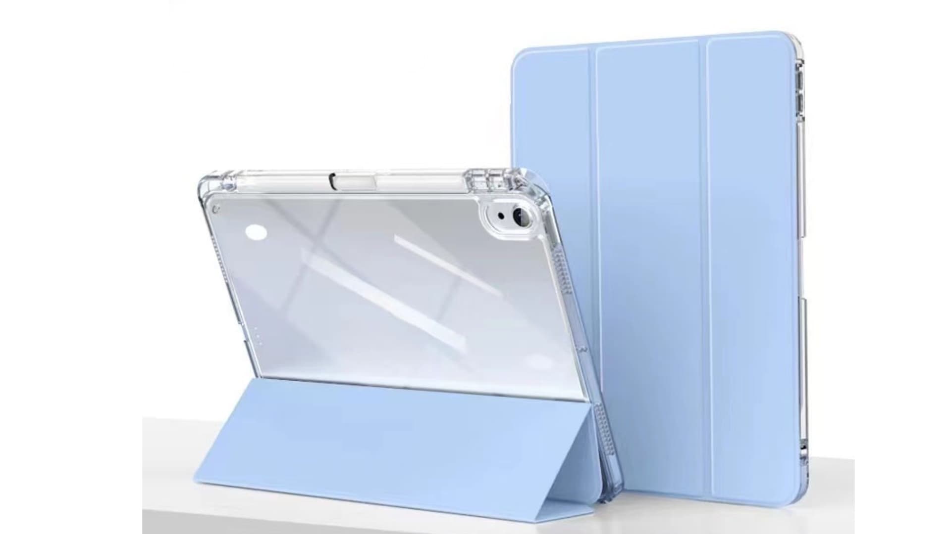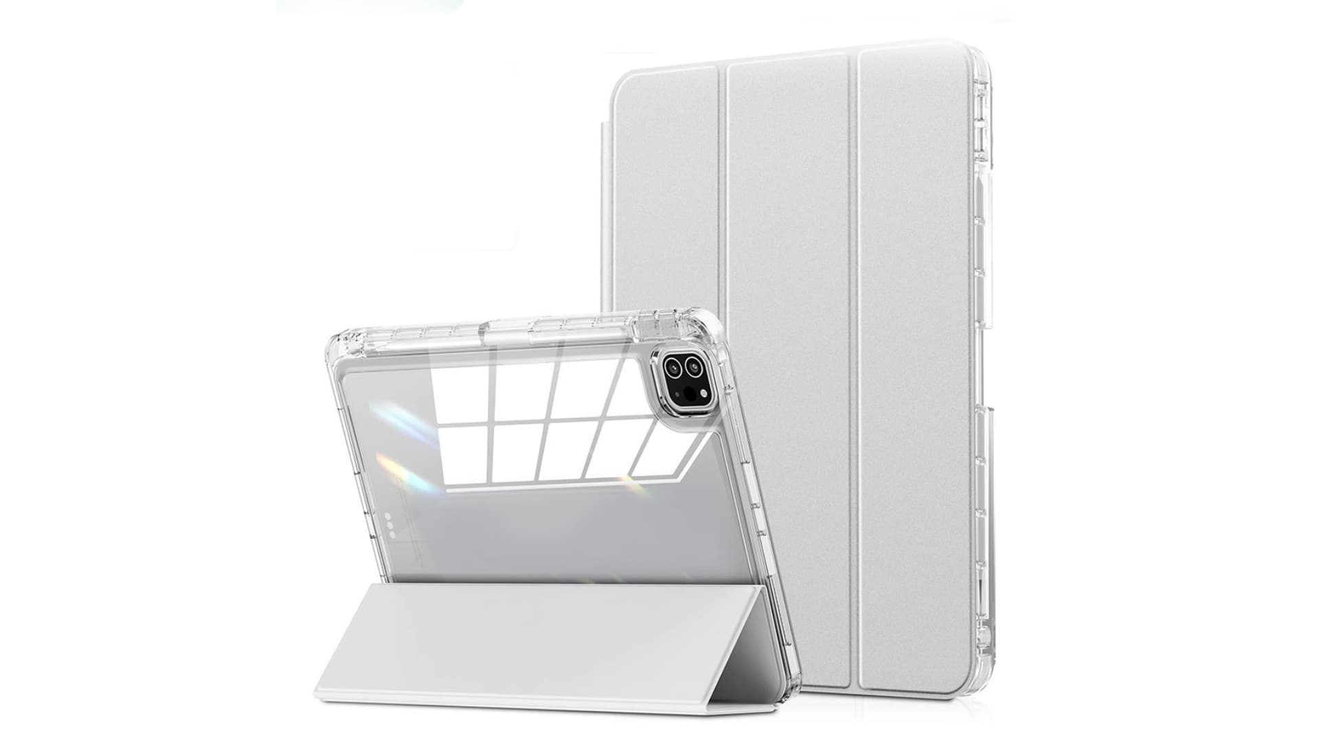 รุ่นนี้เป็นเคสใสเช่นกัน ดีไซน์สวยงาม น้ำหนักเบา มีฟังก์ชั่นที่การใช้งานที่หลากหลาย คือ มาพร้อม Smart Stand ที่หมุนได้ 360 องศา พิมพ์ถนัดกว่า ได้มุมการวาดภาพที่มากกว่า ตัวที่เป็นขาตั้งเป็นแม่เหล็ก ยึดติดแน่น ไม่ต้องกลัว iPad ไหล (ตรงแม่เหล็กนำไปติดกับตู้เย็น หรือขอบประตูที่เป็นเหล็กได้)