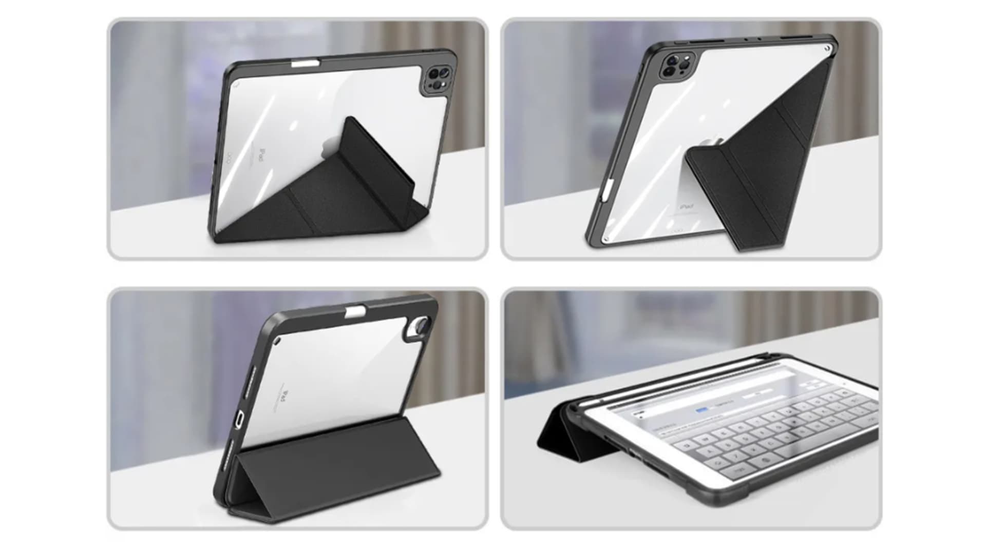 สามารถพับเพื่อตั้งในองศาต่าง ๆ ได้ทั้งหมด 4 แบบ มีการเว้นปุ่ม ช่องเสียบสายชาร์จ เลนส์กล้องแบบพอดี (อย่าลืมซื้อให้ตรงรุ่น) มีช่องเก็บ Apple Pencil ในตัว แถมเวลาพับฝาก็รองรับกับฟีเจอร์การปลุกจอ/ปิดจอ อัตโนมัติมาให้อีก
