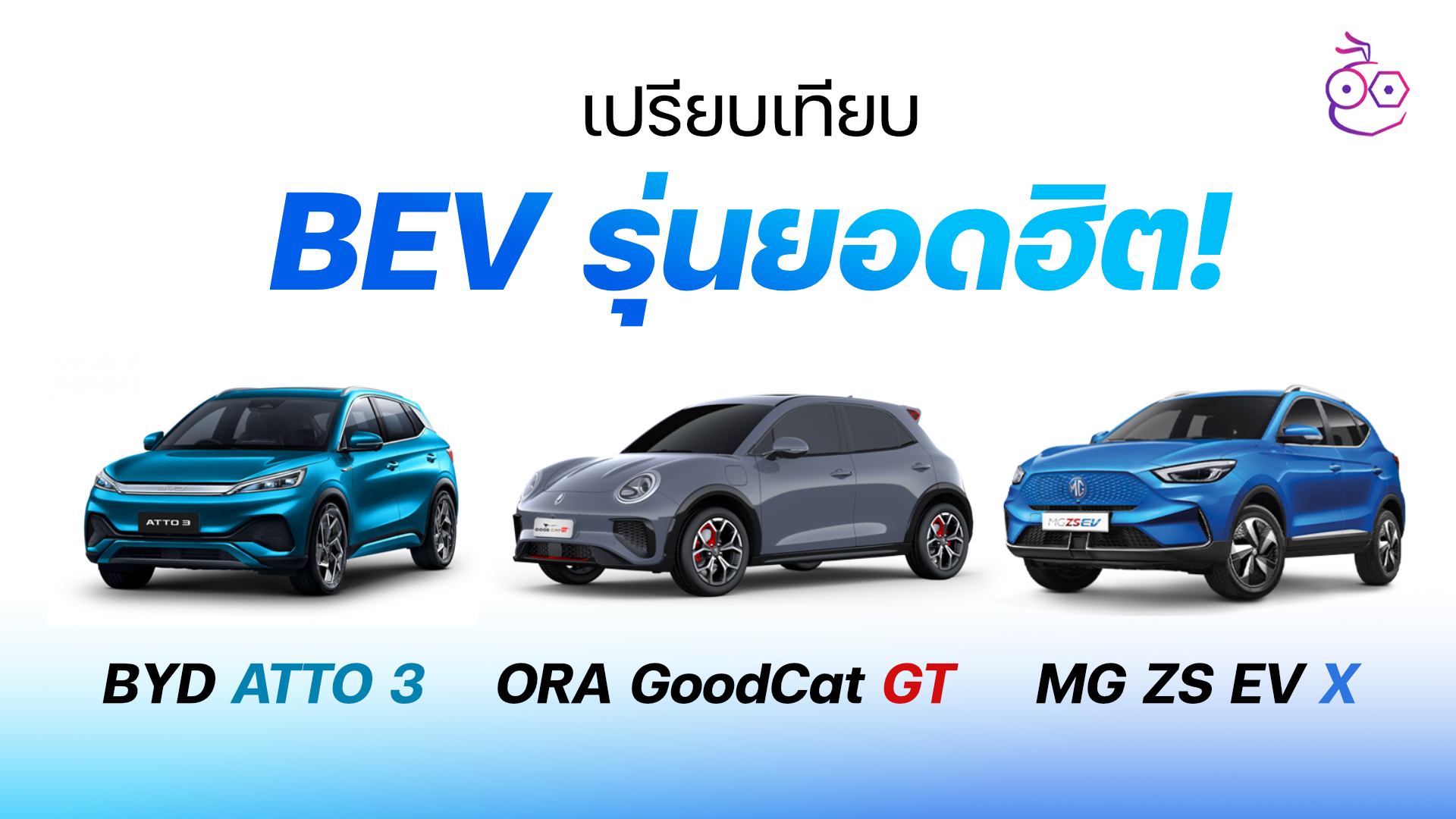 ข้อมูลการเปรียบเทียบสเปคของรถยนต์ไฟฟ้า 100% หรือ BEV รุ่นยอดฮิตจาก 3 ค่ายรถยนต์ที่ขายในไทย ได้แก่ BYD ATTO 3, ORA GoodCat GT และ MG ZS EV X ราค่าไล่เลี่ยกัน มาดูกันว่าแตกต่างกันยังไงบ้าง