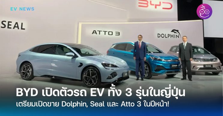 BYD ประเทศญี่ปุ่น เปิดตัวรถ EV สามรุ่นในญี่ปุ่น รุ่น Dolphin, Seal และ Atto 3