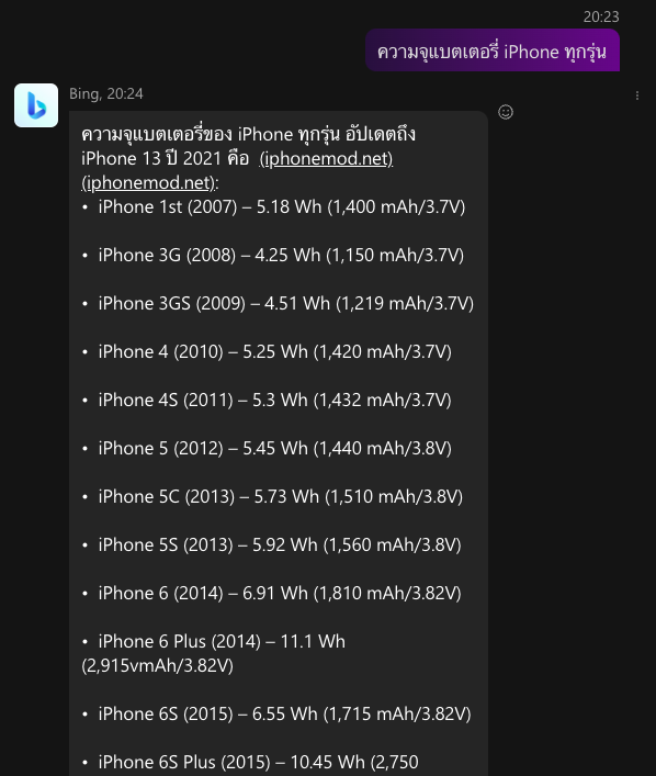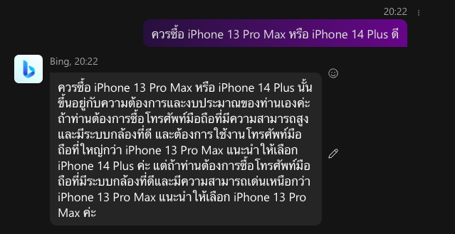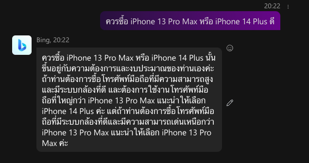 อย่างไรก็ตามยังมีการระบุว่า Bing ยังอยู่ในขั้นการเรียนรู้อยู่ ซึ่งอาจตอบไม่ตรงคำถาม หรือตอบไม่ครบถ้วน ซึ่งต้องใช้เวลาเรียนรู้กันไป, ผู้เขียนลองสอบถามข้อมูลก็พบว่าให้คำตอบพอใช้ได้ แต่ก็อาจจะดูงง ๆ นิด ๆ