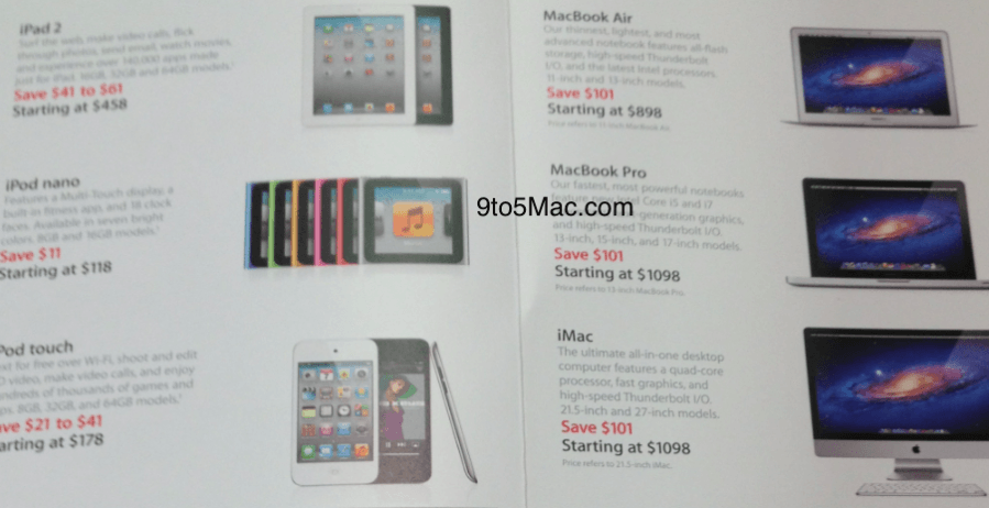 รายงานโดย 9to5mac ได้โพสภาพที่แสดงราคาส่วนลดใน Black Friday 2011 นี้ มีหลายรายการ ทั้ง Macbook Air, Macbook Pro, iMac, iPod Touch, iPod Nano และ iPad 2