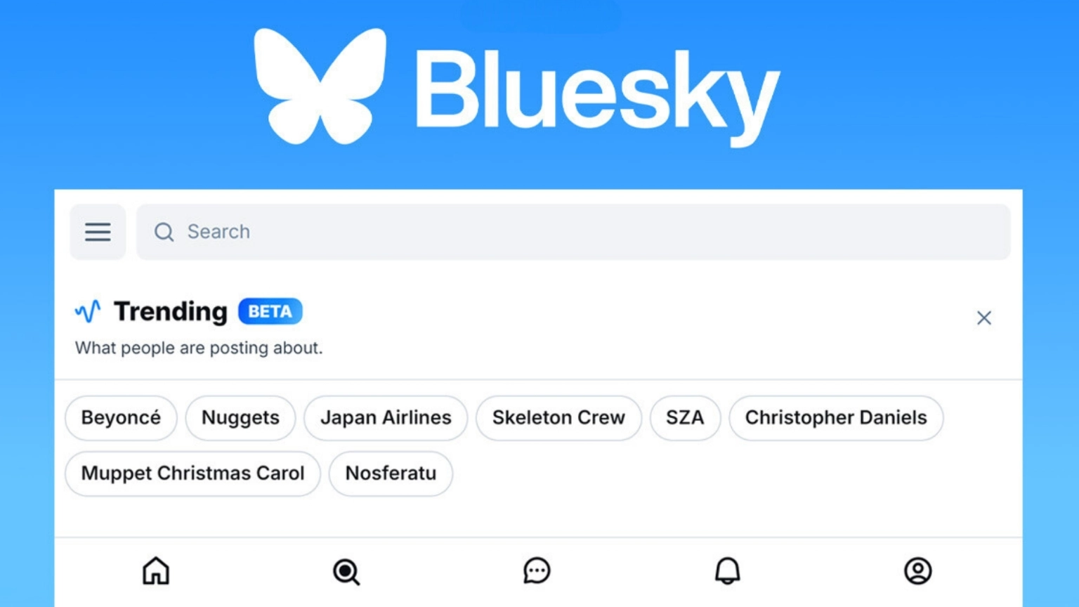 Bluesky ได้ประกาศ เพิ่มฟีเจอร์ “Trending Topics” พร้อมใช้งานแล้วทั้งในแอปพลิเคชันและเว็บไซต์ ผู้ใช้สามารถดูรายการหัวข้อที่ถูกพูดถึงมากที่สุดบน Bluesky ในขณะนั้นได้ โดยการแตะที่หัวข้อ Bluesky จะแสดงโพสต์ยอดนิยมและโพสต์ล่าสุดเกี่ยวกับหัวข้อนั้น
