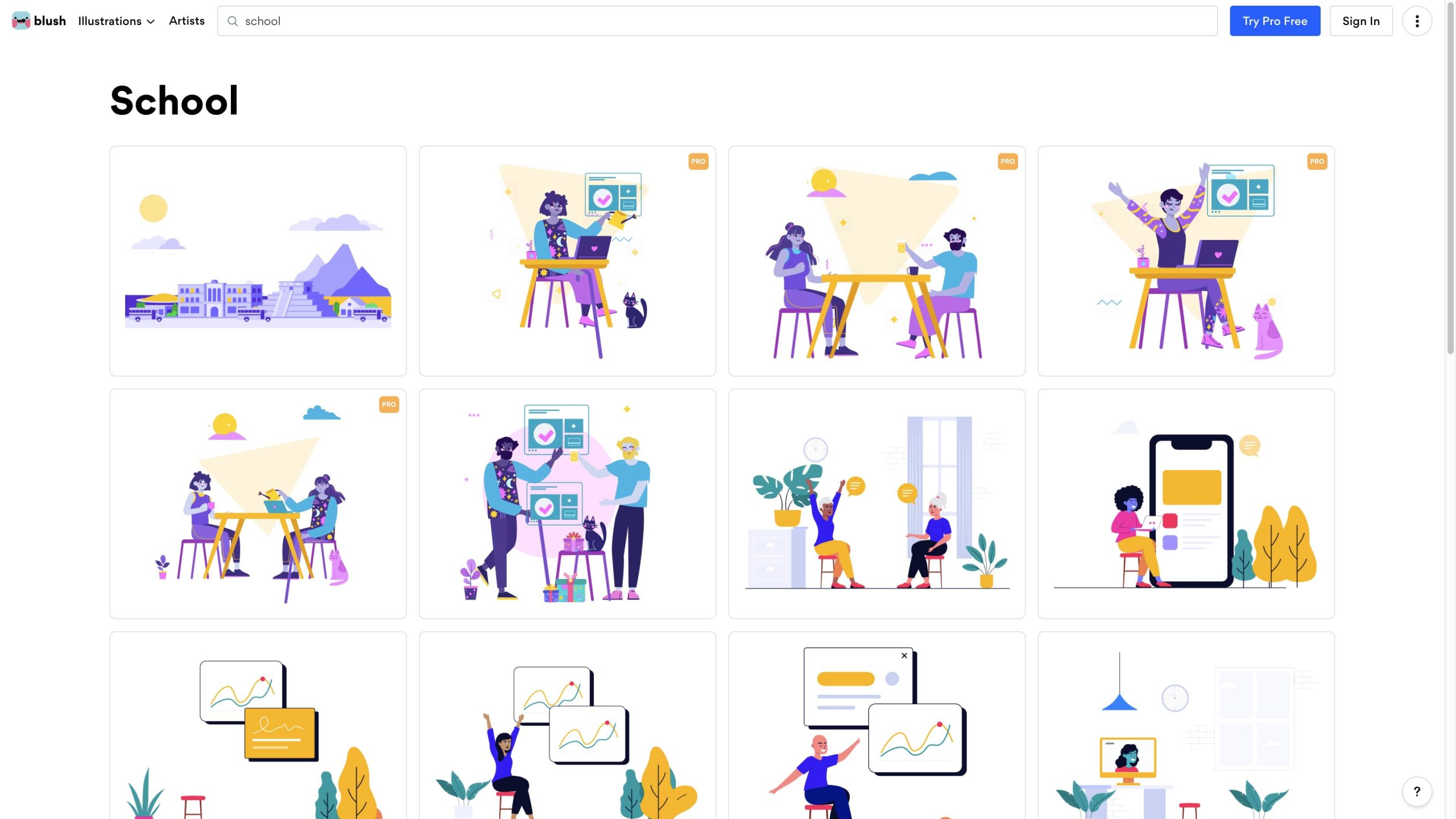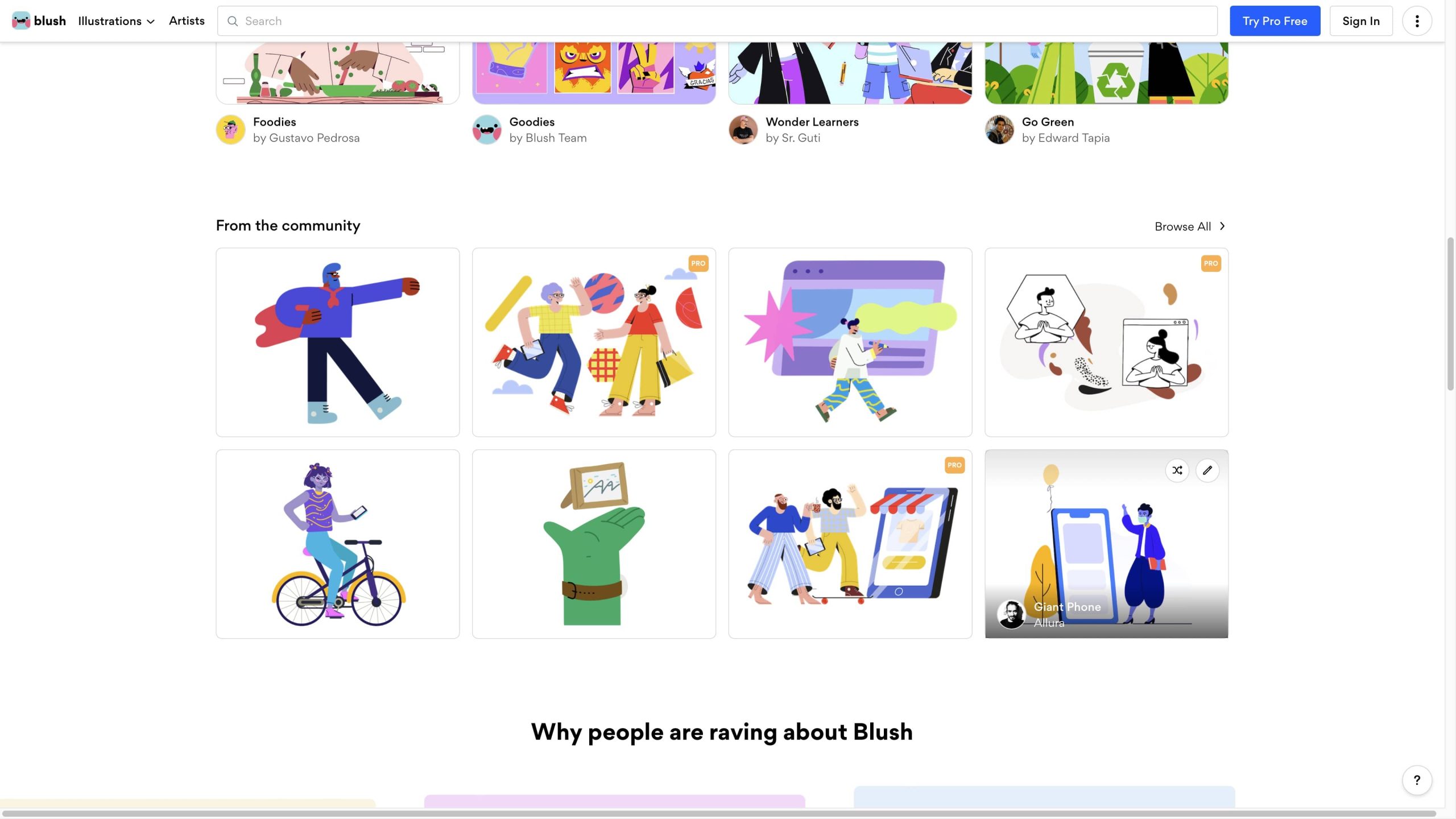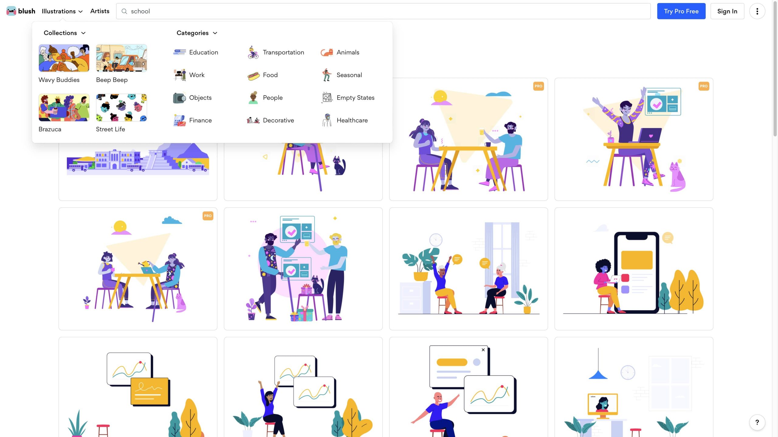 และยังกด “Illustrations” เพื่อดูว่าตอนนี้มีคอลเลคชั่น PNG ไหน น่าใจบ้าง และมีหมวดหมู่ให้เลือกมากมาย