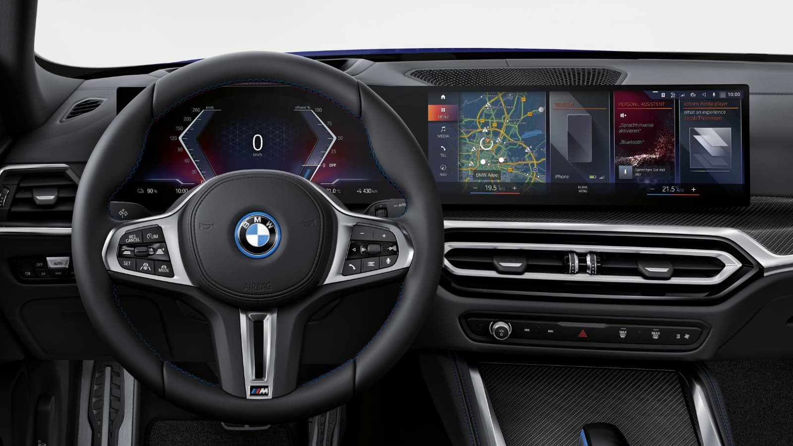 จอแสดงผล iDrive ระบบควบคุมและระบบปฏิบัติการเจเนอเรชั่นใหม่ถูกนำมาติดตั้งเป็นครั้งแรกในรถยนต์บีเอ็มดับเบิลยู i4 และได้รับการพัฒนาให้การสั่งงานระหว่างผู้ขับขี่และรถยนต์เป็นไปอย่างคล่องตัวและเป็นธรรมชาติยิ่งขึ้น ผ่านระบบปฏิบัติการ BMW Operating System 8 ใหม่ล่าสุด โดยเน้นที่การใช้งานหน้าจอสัมผัสแบบโค้ง BMW Curved Display และการสั่งการด้วยเสียงผ่านระบบผู้ช่วยส่วนตัว BMW Intelligent Personal Assistant ที่ถูกพัฒนามาให้มีประสิทธิภาพมากขึ้น