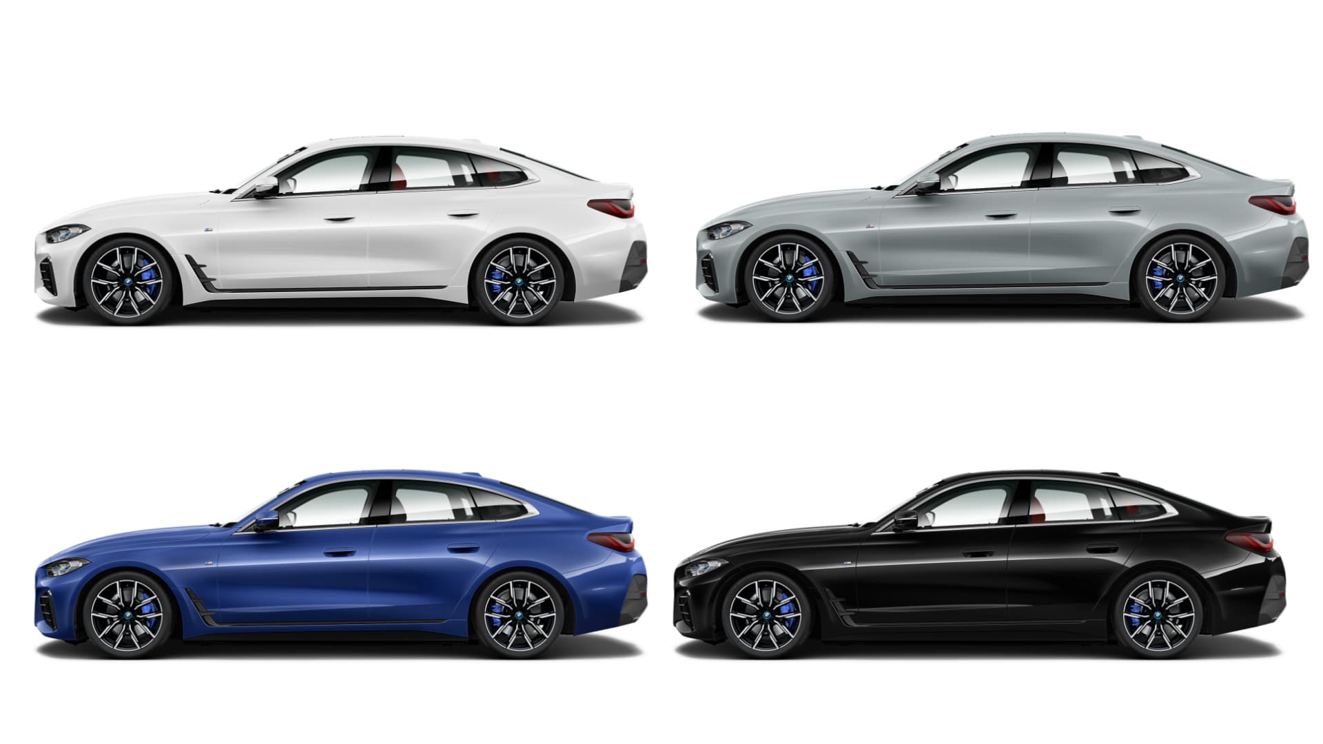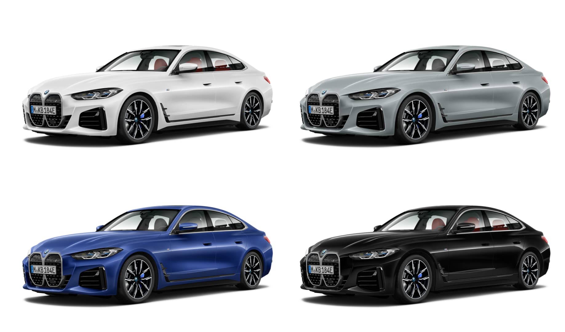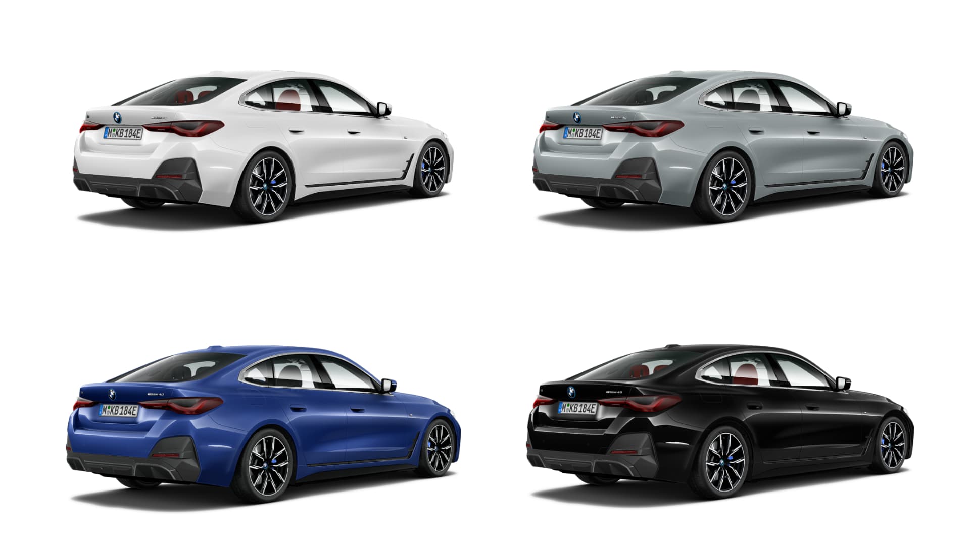 บีเอ็มดับเบิลยู i4 M50 ใหม่ และบีเอ็มดับเบิลยู i4 eDrive40 M Sport ใหม่ มาให้เลือกในสีดำ Black Saphire, สีขาว Mineral White, สีเทา Brooklyn Grey, สีน้ำเงิน Frozen Portimao Blue สำหรับบีเอ็มดับเบิลยู i4 M50 และสี Portimao Blue สำหรับบีเอ็มดับเบิลยู i4 eDrive40 M Sport มีจำหน่ายในจำนวนจำกัดในประเทศไทยเพียง 16 คันสำหรับบีเอ็มดับเบิลยู i4 M50 และ 6 คันเท่านั้นสำหรับบีเอ็มดับเบิลยู i4 eDrive40 M Sport