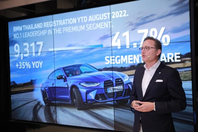มร. อเล็กซานเดอร์ บารากา ประธานและซีอีโอ บีเอ็มดับเบิลยู กรุ๊ป ประเทศไทย กล่าวว่า “บีเอ็มดับเบิลยูประเทศไทยมุ่งมั่นส่งมอบที่สุดสุนทรียภาพแห่งการขับขี่และพลังแห่งทางเลือกให้กับลูกค้า เมื่อทุกคนกำลังก้าวเข้าสู่ยุคของการขับเคลื่อนแห่งอนาคต เรามุ่งสร้างสรรค์นวัตกรรมศาสตร์แห่งศิลป์เพื่อมอบประสบการณ์เหนือระดับให้กับลูกค้า ส่งผลให้คะแนนความพึงพอใจของผู้บริโภค (Net promoter score) ด้านการขายและการบริการสูงสุดเป็นประวัติการณ์ ซึ่งนับเป็นอีกหนึ่งปัจจัยแห่งความสำเร็จที่ส่งผลให้เราสร้างผลงานครั้งประวัติศาสตร์ด้านยอดจดทะเบียนตลอด 8 เดือนที่ผ่านมาในปี 2565 และครองตำแหน่งผู้นำอันดับหนึ่งในตลาดรถยนต์เซกเมนต์พรีเมียมอย่างต่อเนื่อง โดยมียอดจดทะเบียนรถยนต์บีเอ็มดับเบิลยูในเดือนมกราคมถึงสิงหาคมรวม 9,317 คัน ทะยานสู่ส่วนแบ่งการตลาดในเซกเมนต์พรีเมียมที่ 41.7% ความสำเร็จในครั้งนี้ได้เป็นข้อพิสูจน์อีกครั้งถึงความมุ่งมั่นของบีเอ็มดับเบิลยู กรุ๊ป ในการนำเสนอนวัตกรรมและตอบโจทย์ความต้องการของลูกค้าในทุก ๆ ด้านอย่างไม่หยุดยั้งไม่ว่าจะในสถานการณ์ใด”