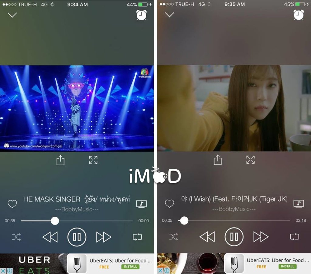 เมื่อเป็นเพลงที่มาจาก YouTube ข้อดี คือ เราสามารถเลือกฟังเฉพาะเสียงหรือสลับไปดู MV ได้ และยิ่งไปกว่านั้นเราสามารถฟังเพลงผ่าน Bobby Music ขณะปิดหน้าจอหรือเล่นแอปอื่น ได้อีกด้วย