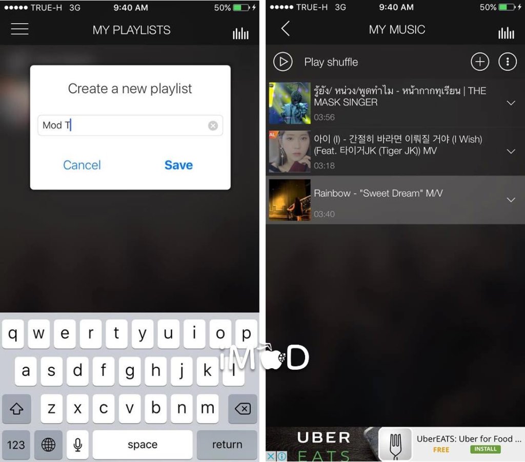 เราสามารถเลือกฟังเพลงจากที่แอปจัดอันดับให้ หรือจะสร้าง Playlist ขึ้นมาเองก็ได้