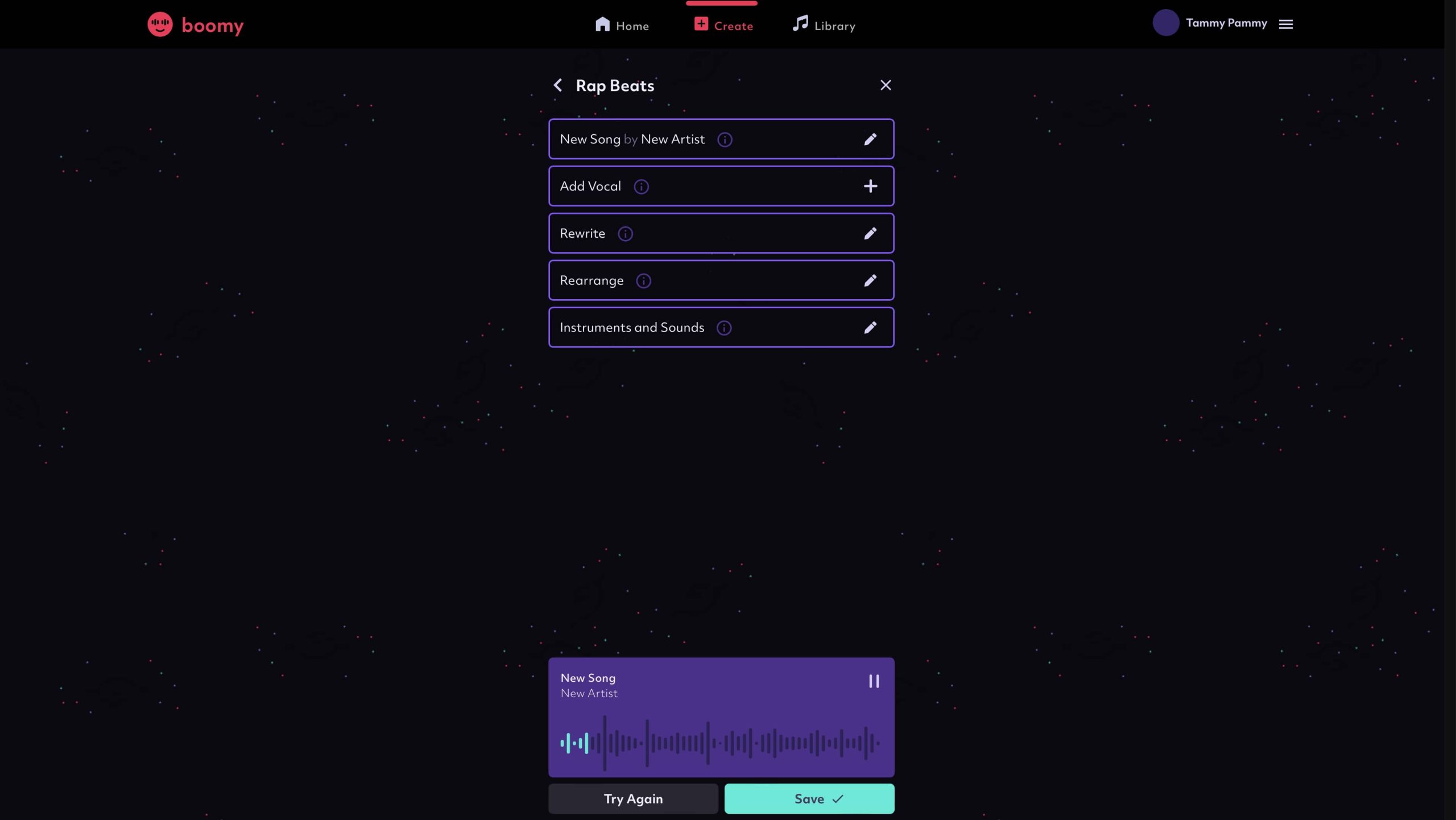 พอเราได้ทำนองเพลงที่ต้องการแล้วให้กด “Create song” เพื่อสร้างทำนองเพลงออกมา พอสร้างทำนองเพลงเสร็จแล้ว ให้ลองฟังทำนองเพลงที่สร้างขึ้นมาก่อนว่าชอบมั้ย แต่ถ้าเราไม่ชอบ เราสามารถกด “Try Again” เพื่อทำทำนองเพลงออกมาใหม่