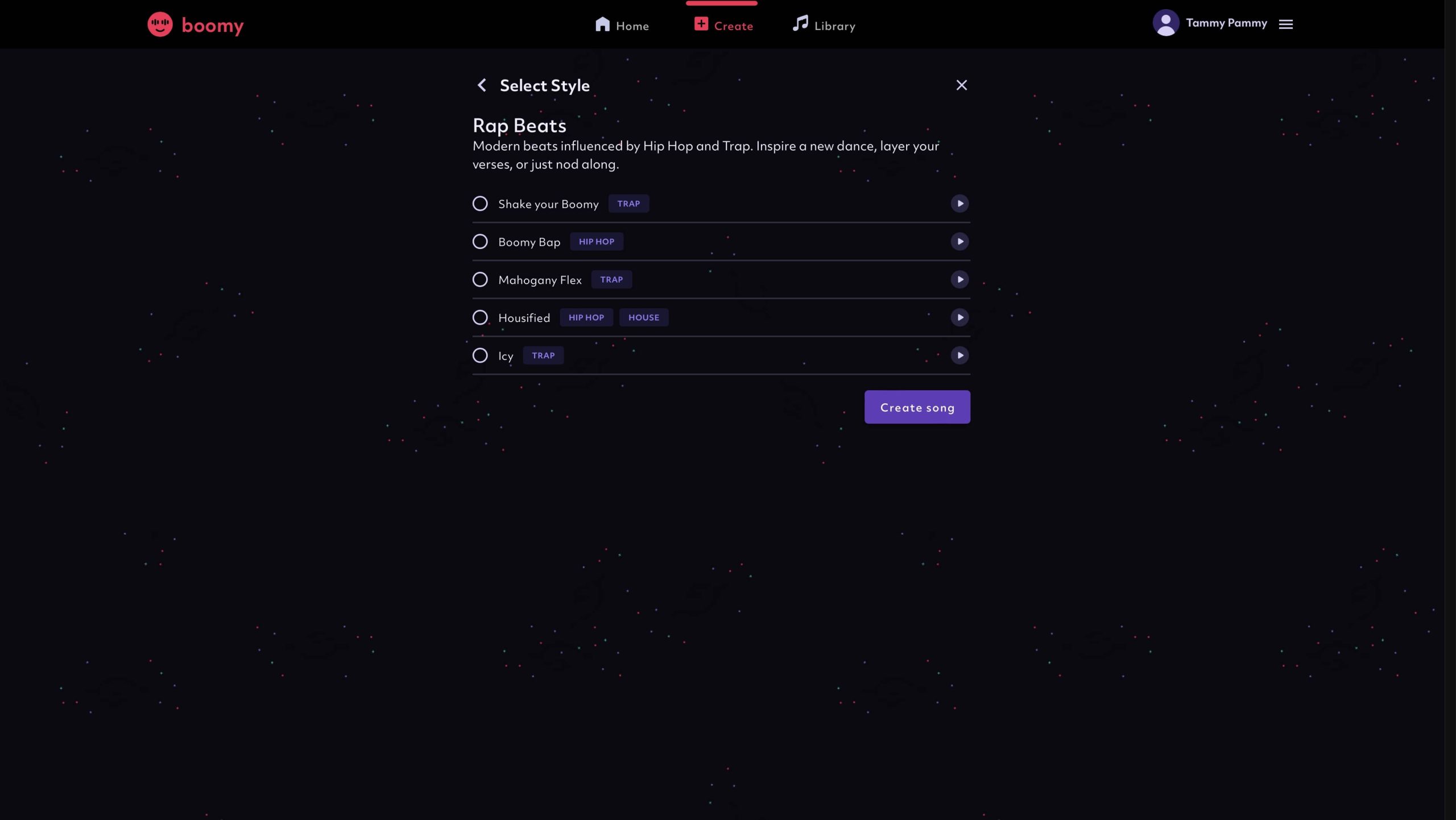 พอเราเลือกแนวเพลงที่ชอบมาแล้ว อย่างเช่น ทีมงานเลือก “Rap Beats” ก็จะมีทำนองเพลงให้เลือก