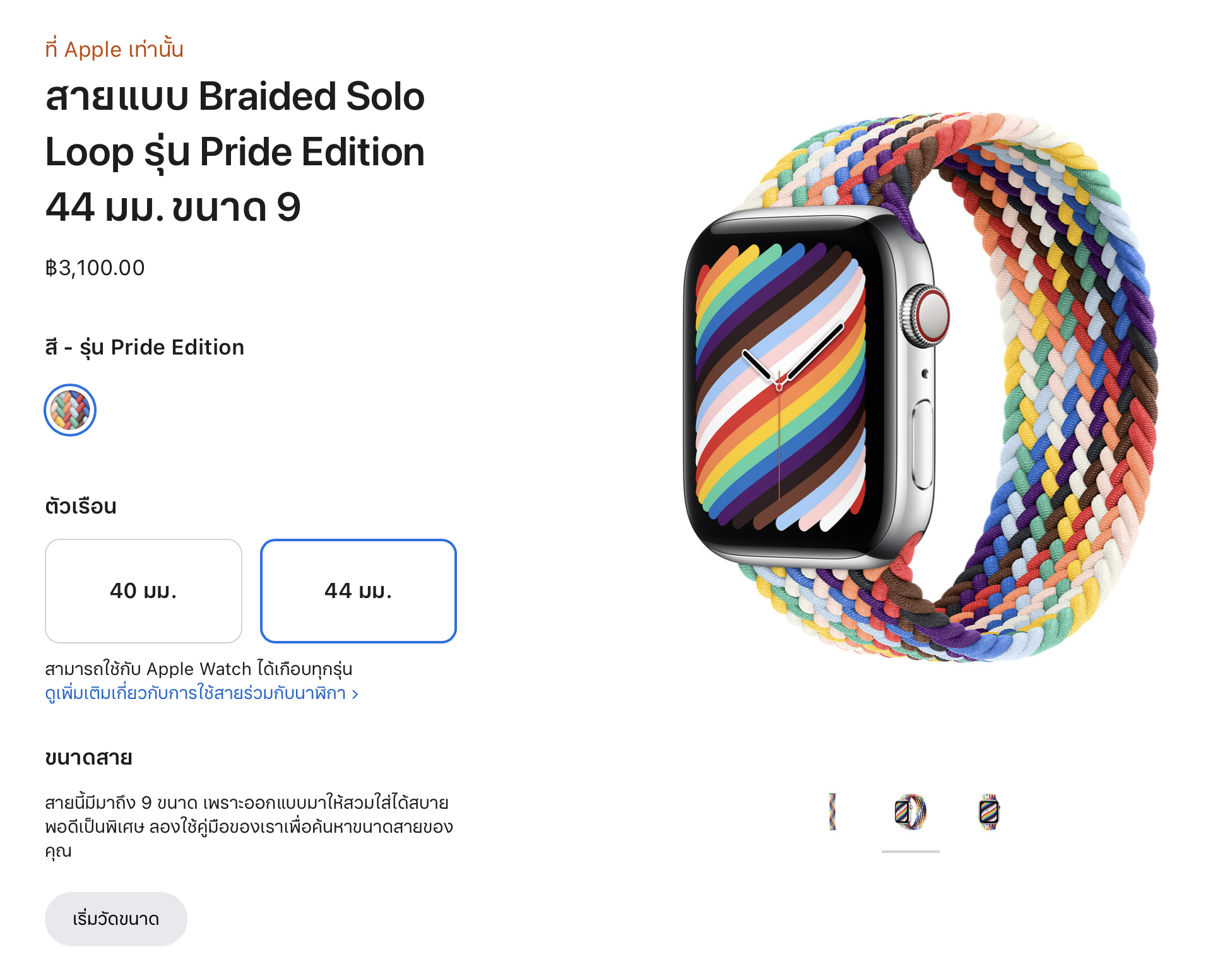 เมื่อปีที่แล้ว Apple เปิดตัวเปิดขายสาย Braided Solo Loop รุ่น Pride Edition ปี 2021 เป็นสายถักรุ่นราคา 3,100 บาท สวยงามมาก