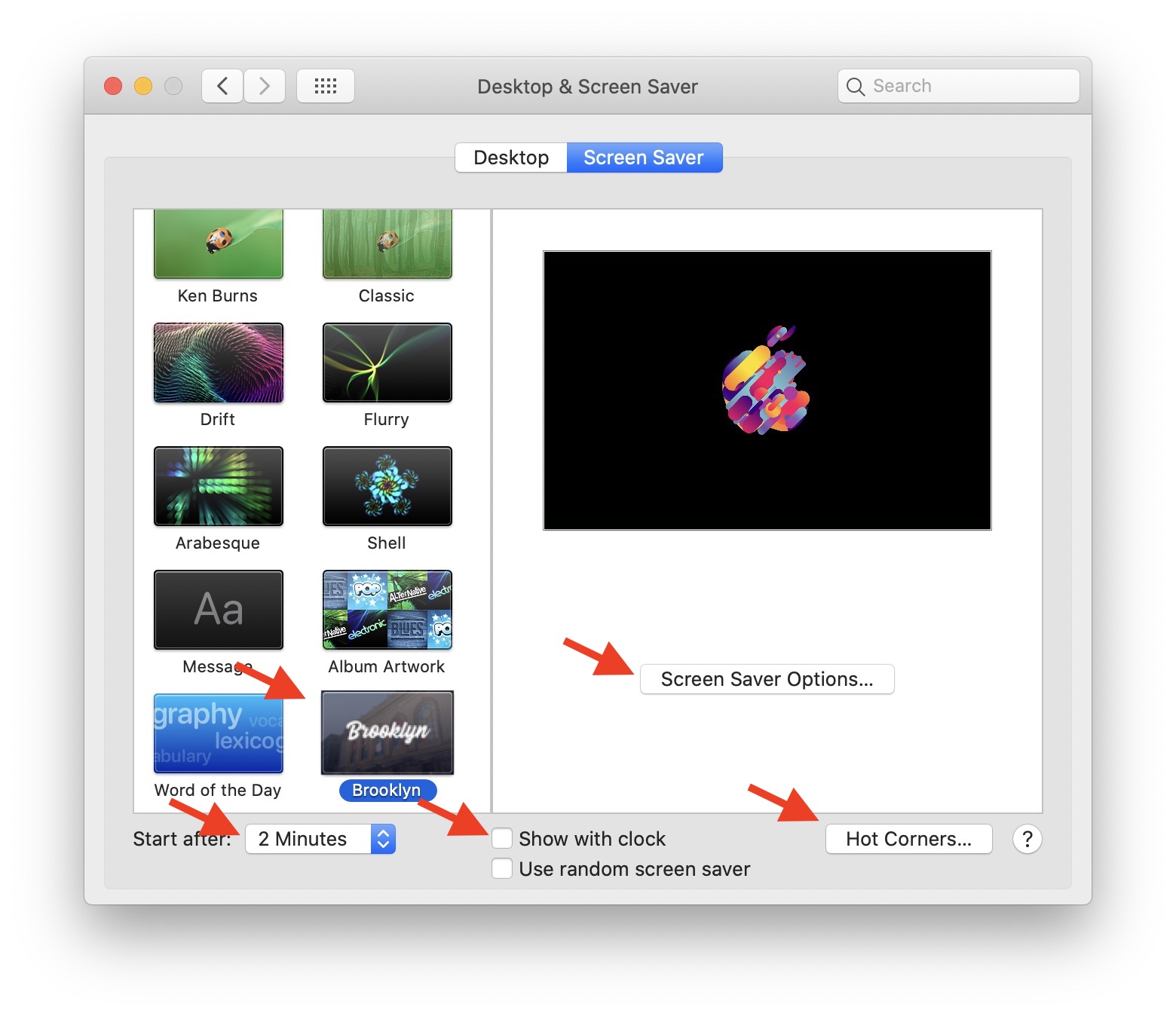 - เลือก Brooklyn ที่มุมล่างซ้ายเพื่อตั้งให้เป็น Screen Saver หลัก