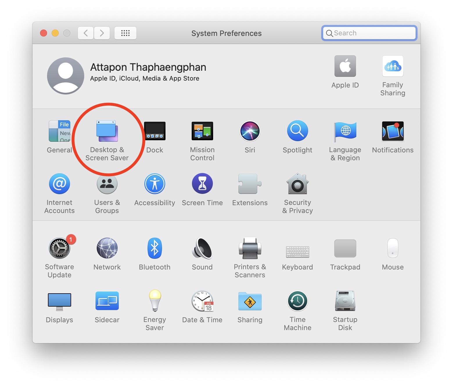 การตั้งค่าให้เข้าไปที่โลโก้ Apple ที่มุมบนซ้าย เลือก System Preferences >