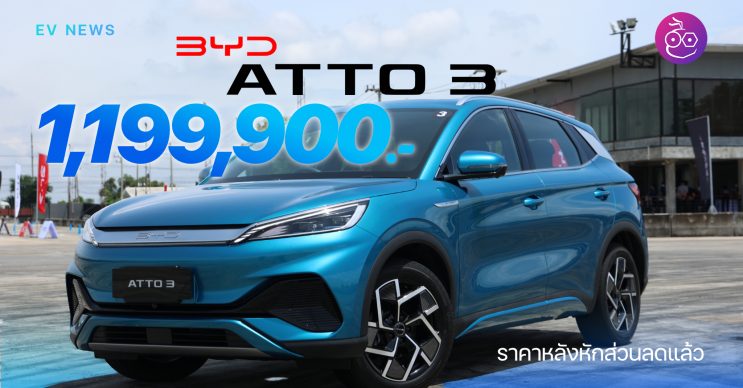 BREAKING! เปิดราคา BYD ATTO 3 ราคาหลังหักส่วนลดของรัฐแล้วอยู่ที่ราคา 1,199,900 บาท ทุกคันมาพร้อม Rêver Care มูลค่ารวม 180,000 บาท เปิดให้จองตั้งแต่ 1 พ.ย. 65 เป็นต้นไป ที่ศูนย์บริการ ตัวแทนจำหน่ายทั่วประเทศ (ไม่มีสั่งจองออนไลน์)