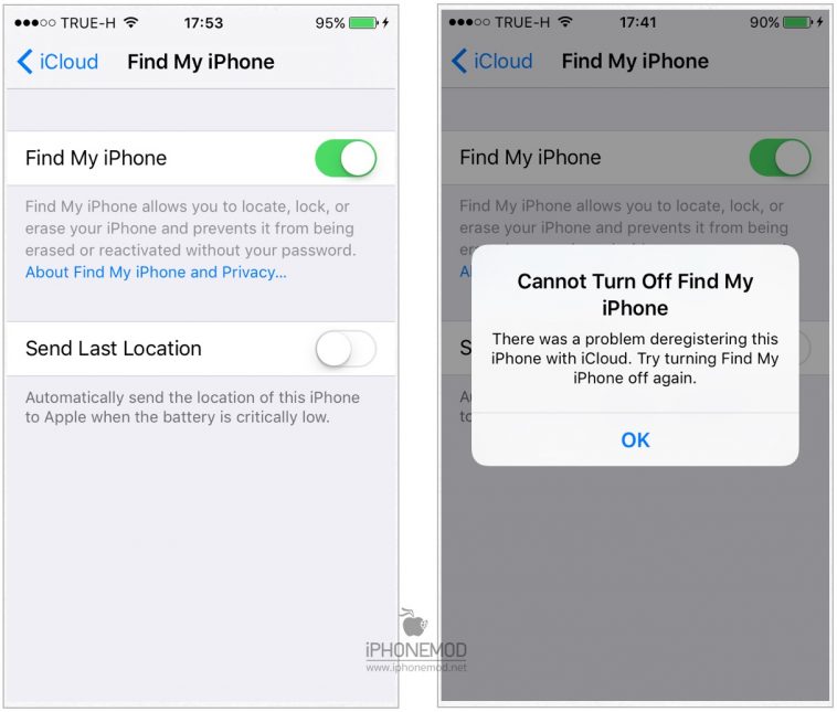 แจ้งปัญหาล่าสุดที่พบคือไม่สามารถปิด Find My iPhone ได้ซึ่งไม่แน่ใจว่าเกิดขึ้นตั้งแต่เมื่อไหร่ ผมเห็นอาการนี้ครั้งแรกในเพ็จโดยมีสมาชิกมาโพสไว้ ทั้งนี้เลยลองปิดที่เครื่องของคนเองก็ยังไม่สามารถทำได้ ใช้ทั้ง WiFi และ 4G ก็ไม่ได้เช่นกัน