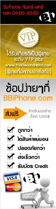 ถือว่าเป็นเว็บดี ๆ อีกเว็บหนึ่งที่ไม่ควรพลาดเลยจริง ๆ นะคะ สำหรับคนรัก iPhone เพราะนอกจากจะได้รับความพึงพอใจในสินค้าที่ซื้อแล้ว ยังประหยัดและมั่นใจได้ในคุณภาพอีกด้วย แถมยังจัดส่งรวดเร็ว บริการดีซะขนาดนี้ ใครที่สนใจก็สามรถเข้าไปดูได้ที่ www.BBiphone.com หรือสมัครเป็น FanPage Facebook ได้ที่ http://www.facebook.com/bbiphone ค่ะ หรือสามารถโทรไปสอบถามได้ที่ 084-900-1299 วันทำการ จันทร์-เสาร์ เวลา 09.00 – 20.00 น. นะคะ