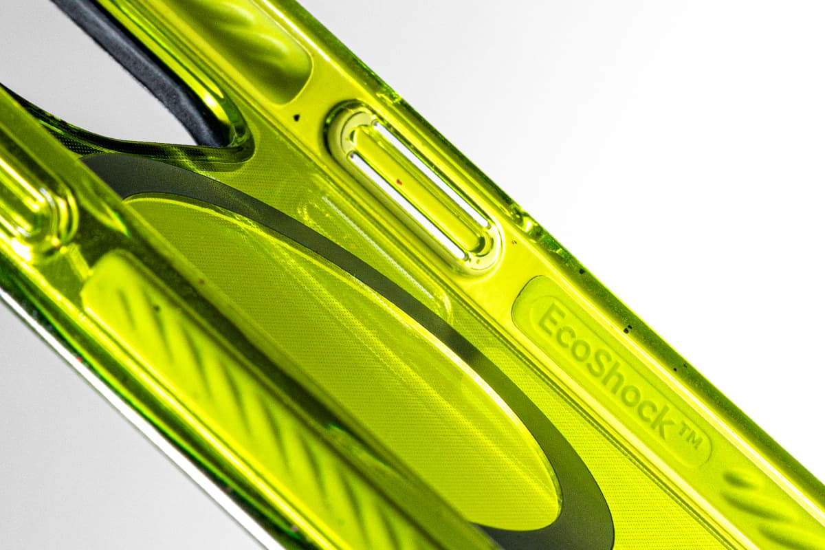 CASETiFY ได้สร้างสรรค์เทคโนโลยีสุดล้ำขึ้นมาด้วยวัสดุใหม่ที่มีกรรมสิทธิ์ (อยู่ระหว่างการจดสิทธิบัตร) ภายใต้ชื่อ EcoShock™ (อีโค่ช็อก) ที่ทำมาจากพืช ซึ่งในระดับโมเลกุลของวัสดุใหม่นี้ สามารถเปลี่ยนพลังงานจลน์ของแรงกระแทกให้เป็นความร้อนได้ ส่งผลให้เกิดลวดลายบิดเกลียวกระจายไปทั่วพื้นผิวของเคส
