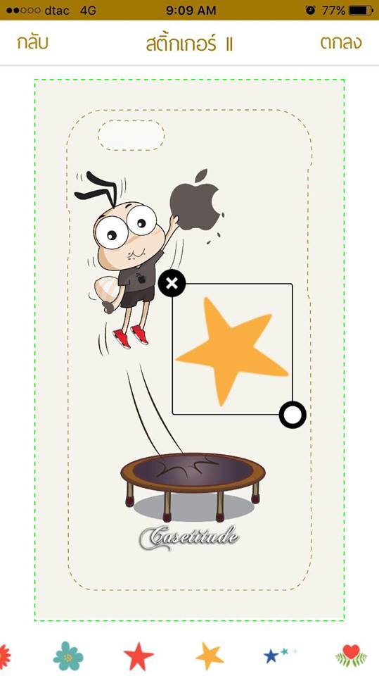 เมื่อเลือกรูปภาพที่ต้องการได้แล้ว สามารถย่อขยายตัวรูปภาพให้พอดีกับขนาดของเคส โดยผู้ใช้ควรย่อ-ขยายรูปภาพให้อยู่ในเส้นประรูปเคสที่วางไว้