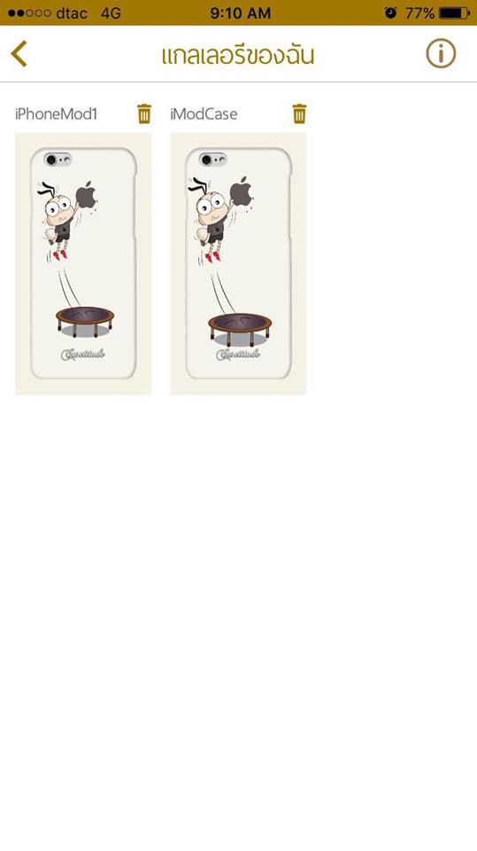 หากเราต้องการสั่งซื้อเคสที่ออกแบบเอง ทำได้โดยการเปิดเมนูด้านซ้าย เลือกแกลเลอรีของฉัน เราจะเห็นรายการเคสมือถือที่เราออกแบบเองทั้งหมด