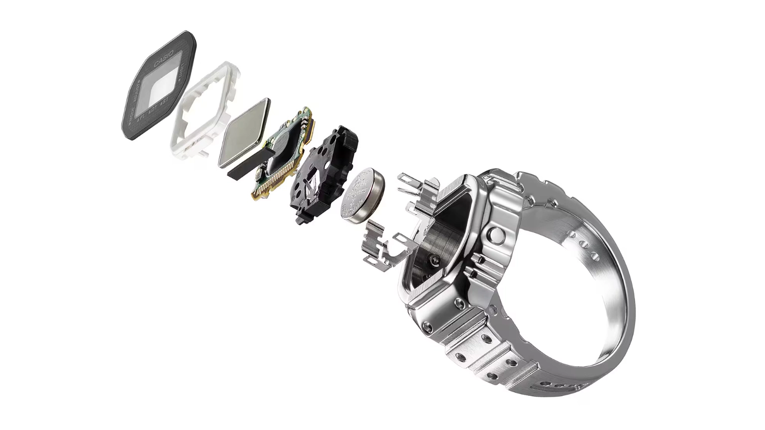 นาฬิกาวงแหวนรุ่นนี้มาพร้อมกับการออกแบบที่ซับซ้อนโดยใช้ เทคโนโลยีการฉีดขึ้นรูปโลหะ (Metal Injection Molding – MIM) ซึ่งช่วยสร้างสรรค์รูปร่างที่แม่นยำและรายละเอียดที่สวยงาม ตัวเรือนทำจากเหล็กกล้าไร้สนิมคุณภาพสูง ที่ผสานความแข็งแกร่งเข้ากับความงดงามได้อย่างลงตัว และตัวแหวนออกแบบโดยมีนาฬิกา G-Shock รุ่น GMW-B5000 เป็นต้นแบบ