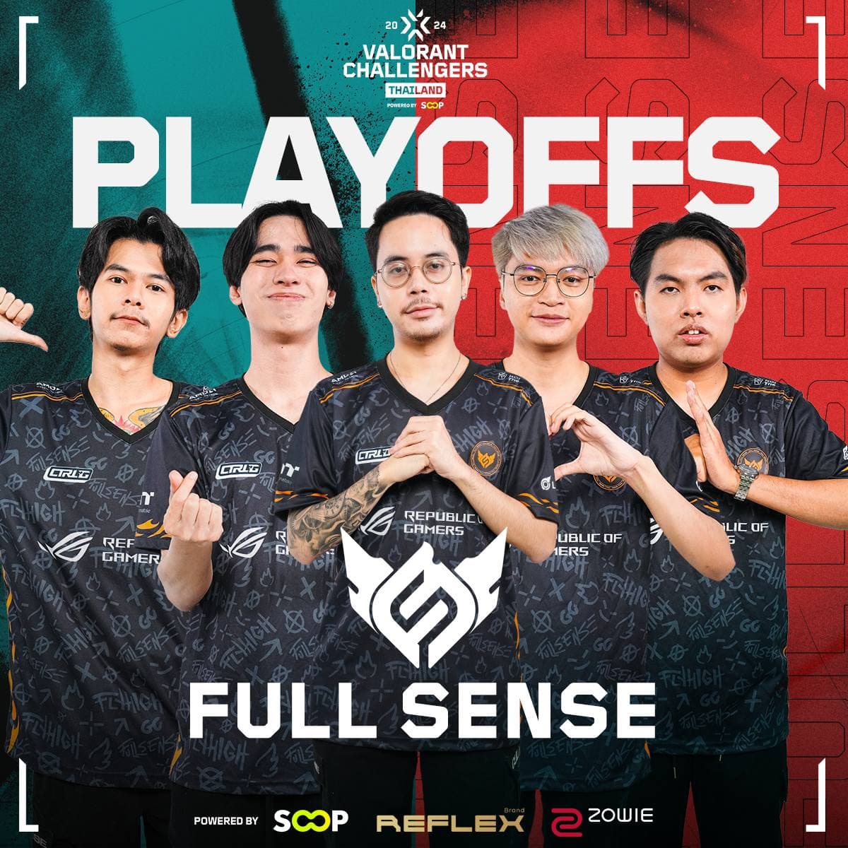 โดยทีม FULL SENSE เข้ามาในรอบ Playoffs แบบไร้พ่ายนอกจากนี้พวกเขายังไม่แพ้ใครเลยตั้งแต่ Split 1 ถือเป็นอีกหนึ่งทีมเต็งที่น่าจับตามองมาก โดยฟอร์มการเล่นในรอบ Group Stage Challenger League 2024 Thailand: Split 2 มีดังนี้ จึงทำให้ FULL SENSE เข้ามาในอันดับที่ 1