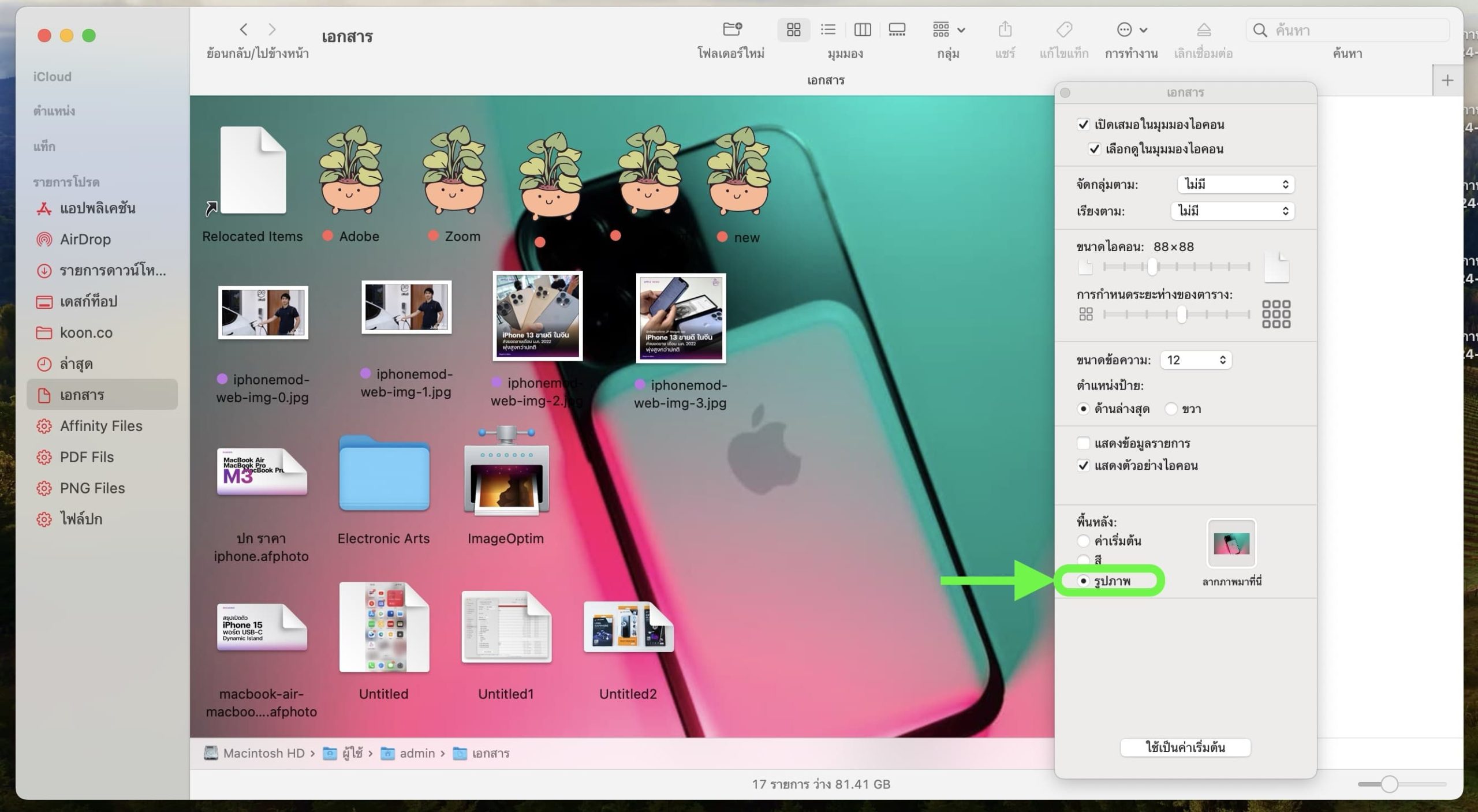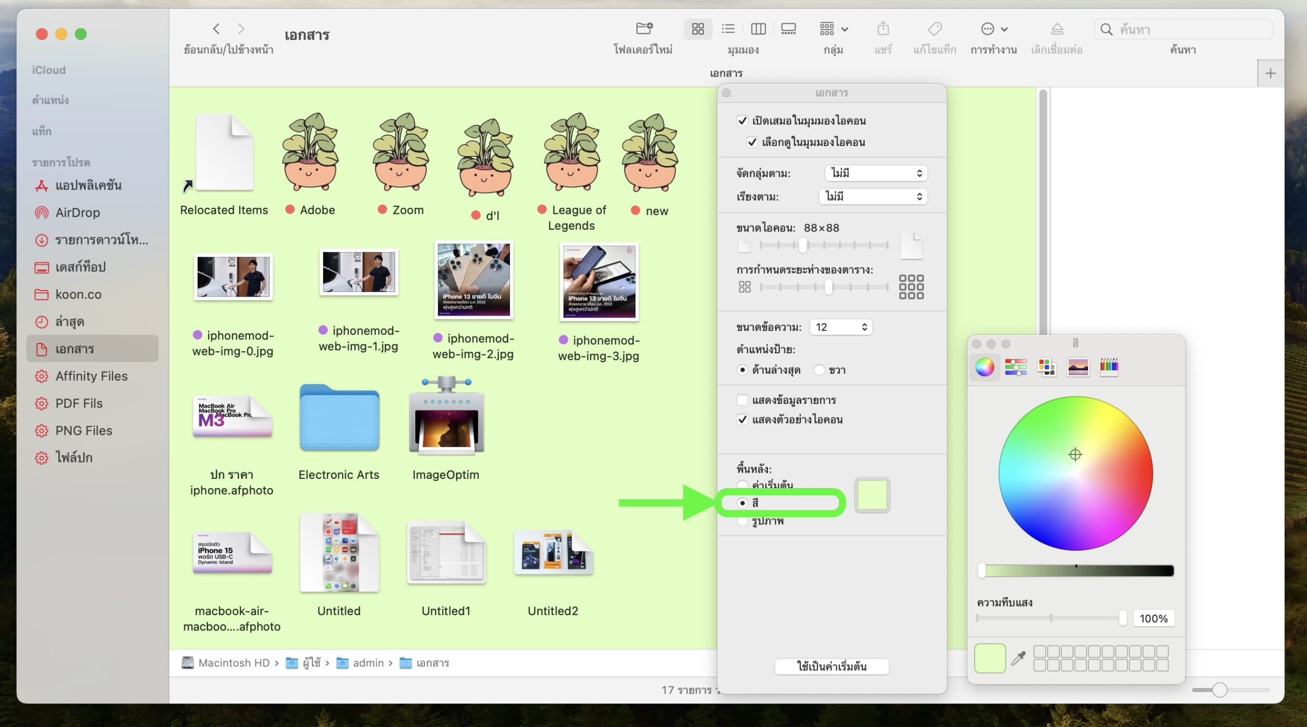 วิธีเปลี่ยนสี ใส่รูปพื้นหลังโฟลเดอร์ใน Finder บน Mac