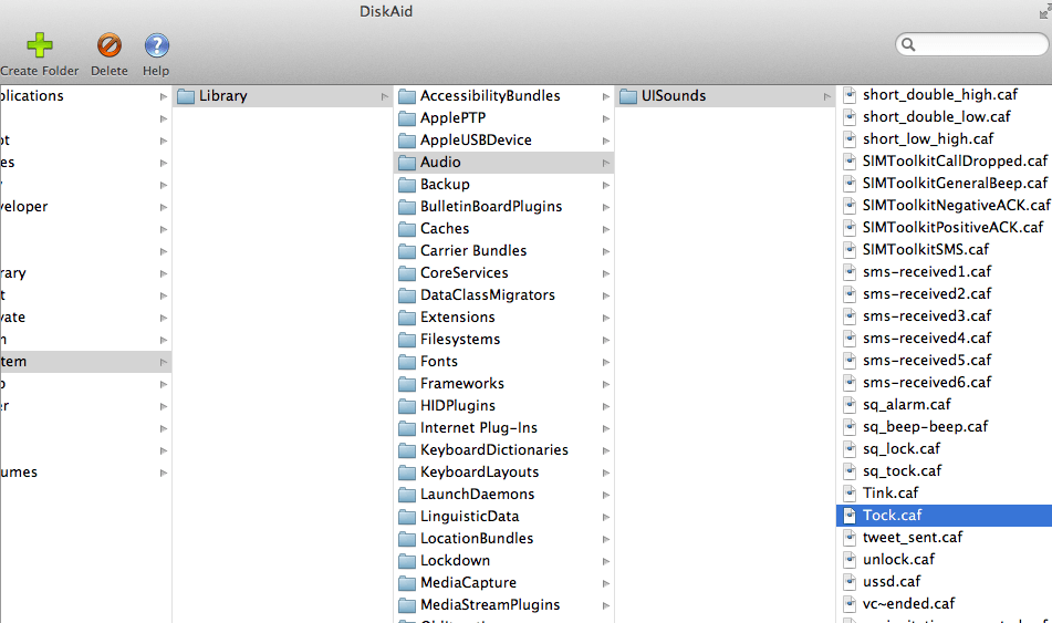 2. เข้าไปที่ System/Library/Audio/UISounds/Tock.caf