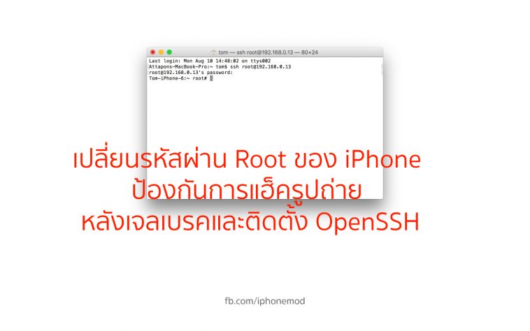 เปลี่ยนรหัสผ่าน Root ของ iPhone ป้องกันการแฮ็ครูปถ่าย หลังเจลเบรคและติดตั้ง OpenSSH