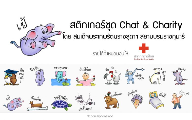 สติกเกอร์ลาย Chat & Charity โดยงานออกแบบของสมเด็จพระเทพรัตนราชสุดาฯ สยามบรมราชกุมารี ชุดนี้จัดทำขึ้นเพื่อการกุศลทั้งนี้รายได้ทั้งหมดจะมอบให้สภากาชาดไทยเพื่อนำไปใช้ในงานด้านการกุศลต่างๆ