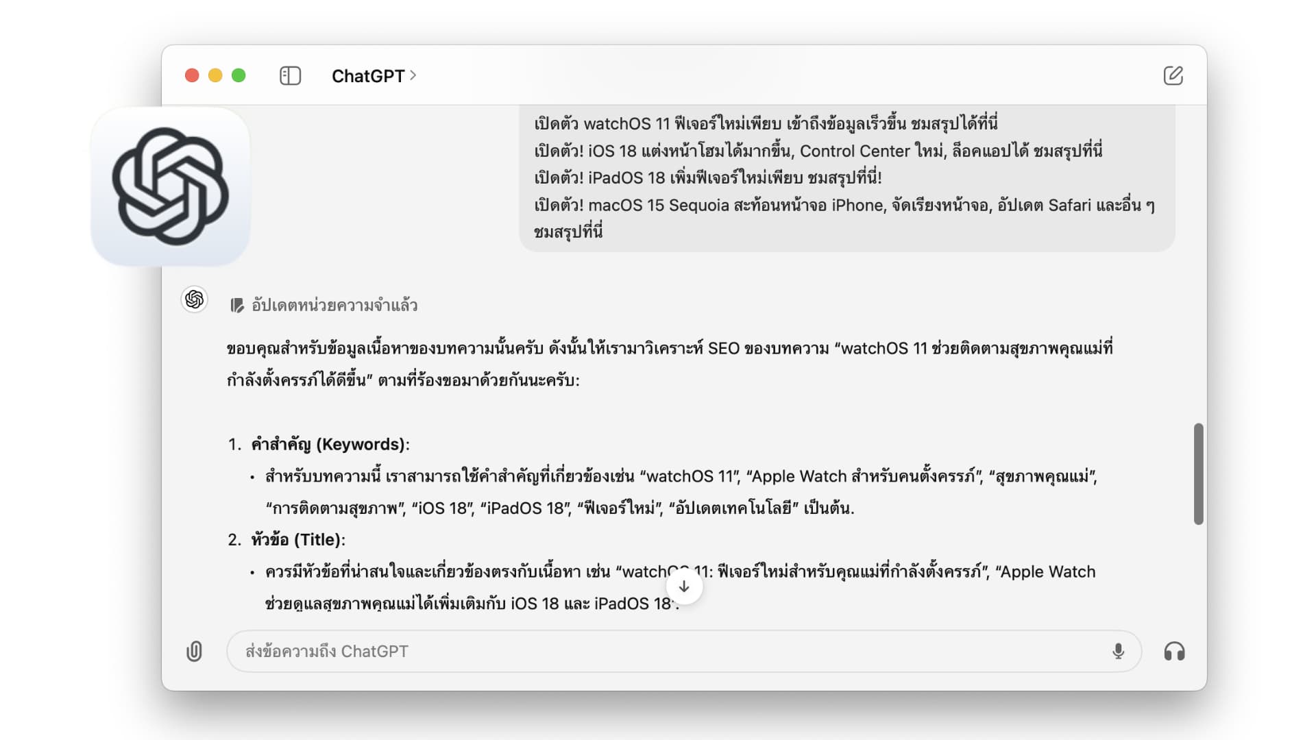 ChatGPT สำหรับ Mac มาแล้ว! รองรับภาษาไทย พูดคุยผ่านเสียงได้