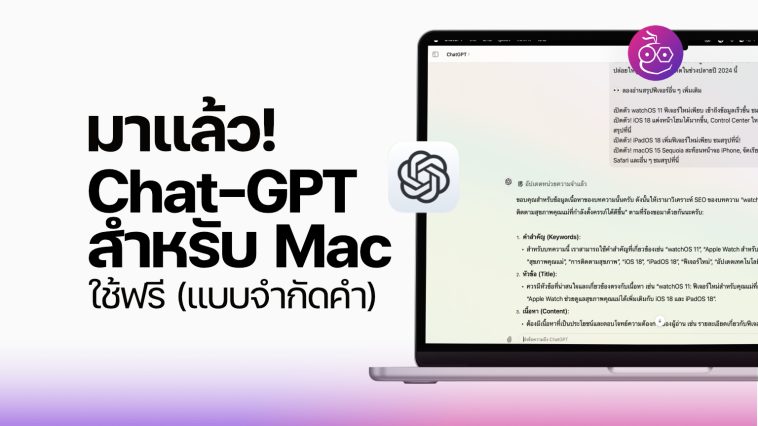 OpenAI เปิดให้ดาวน์โหลดแอป ChatGPT สำหรับ Mac แล้ววันนี้! โหลดฟรี ใช้ฟรี (แบบจำกัดคำ) ถูกใจคนไทยแน่นอน เพราะรองรับภาษาไทย