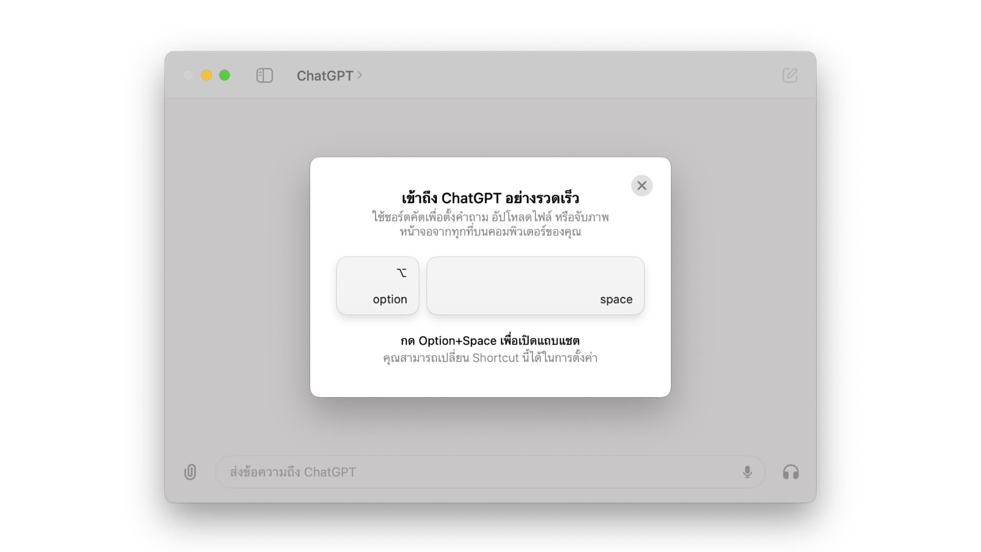 เรียกใช้ ChatGPT ได้ง่าย ๆ แค่กดคีย์ลัด Option+Spacebar