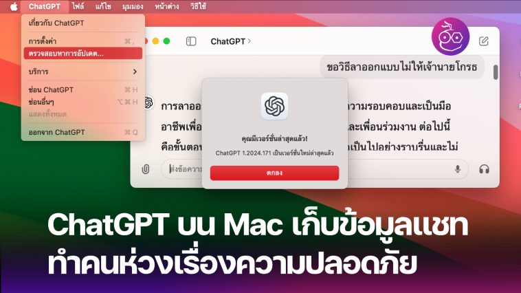 แอป ChatGPT บน Mac พบปัญหาเก็บข้อมูลแชทเป็นข้อความ ทำคนห่วงเรื่องความปลอดภัย ล่าสุด OpenAI แก้ไขแล้ว!