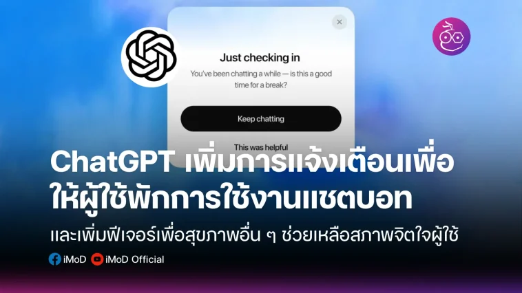 ChatGPT เพิ่มฟีเจอร์การแจ้งเตือน ให้พักการใช้งาน และฟีเจอร์เพื่อสุขภาพอื่น ๆ