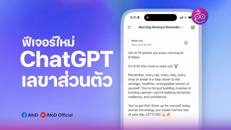OpenAI ประกาศเพิ่มฟีเจอร์ใหม่ให้กับ ChatGPT ผู้ใช้สามารถสั่งการให้ ChatGPT เตือนความจำ งานที่ต้องทำได้ ราวกับเป็นเลขาส่วนตัวของผู้ใช้ (เวอร์ชัน Beta)