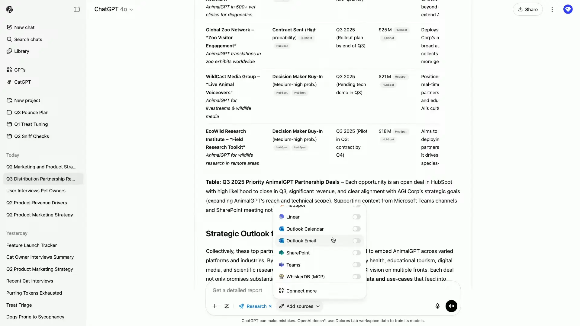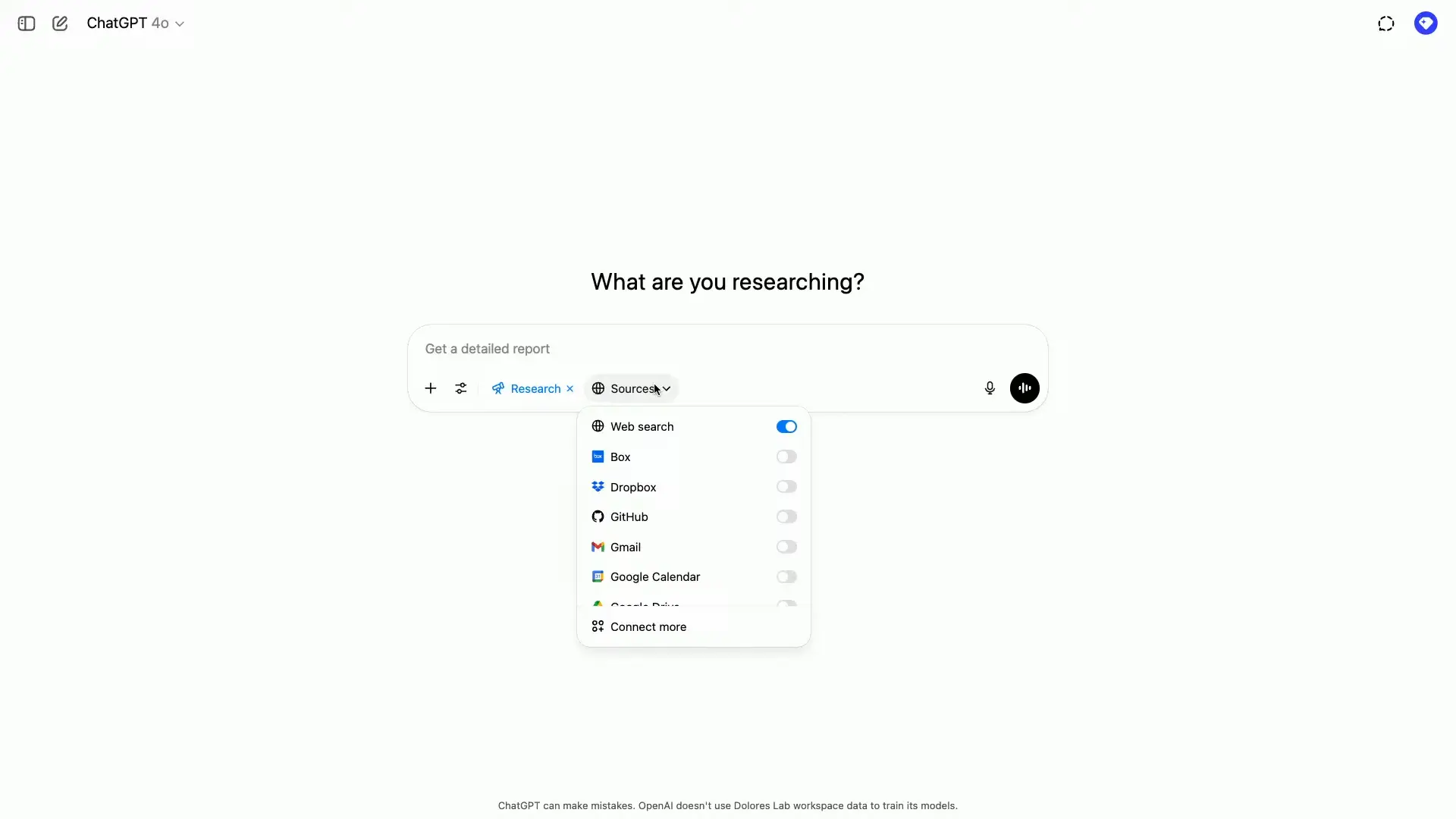 นอกจาก Cloud Drive แล้ว OpenAI ก็ได้ประกาศการเชื่อมต่อกับ Platform อื่น ๆ เพิ่มเติม เพื่อให้ผู้ใช้สามารถสร้างรายงานการวิจัย เอกสารโครงการต่าง ๆ ที่รวบรวมจากหลาย Platform ได้ โดยรองรับดังนี้