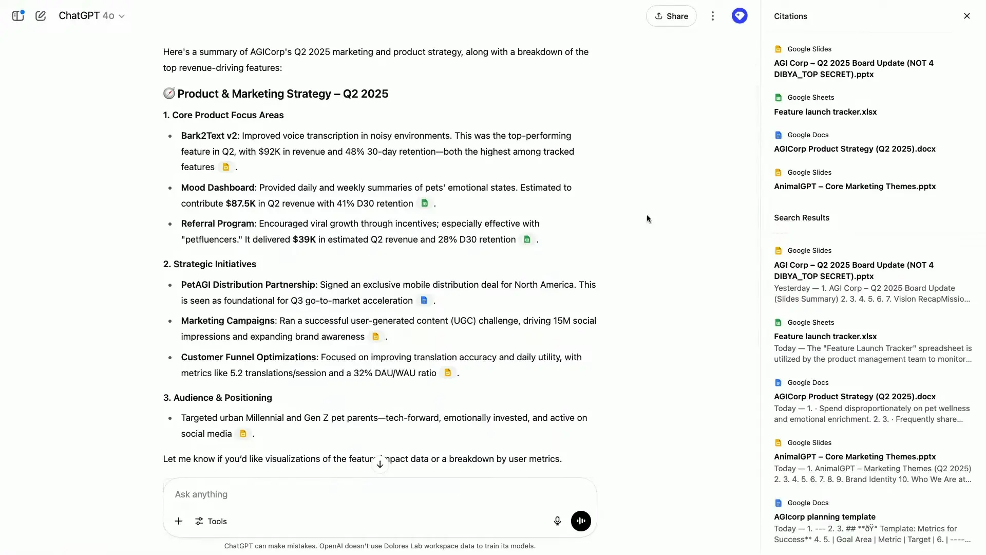 OpenAI ได้เปิดตัวการเชื่อมโยงกับบริการ Cloud ต่าง ๆ เช่น Google Drive, Dropbox, OneDrive, Box, SharePoint ที่ผู้ใช้สามารถใช้ ChatGPT ในการดึงข้อมูล ดึงไฟล์จาก Cloud Drive ได้ และสามารถหาข้อมูลมาตอบคำถามได้
