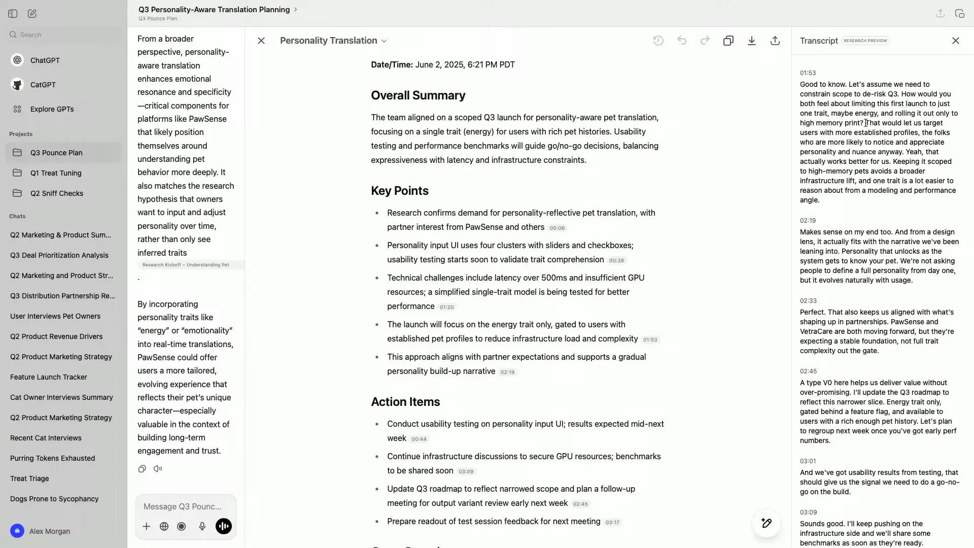 Record Mode ของ ChatGPT ไม่เหมือนกับ Notion ที่เป็น Bot ของแอป Zoom ที่ Zoom จะมองว่า Notion เป็นผู้เข้าร่วมประชุมหนึ่งคน แล้วทำการบันทึกข้อมูลเหล่านั้น ซึ่ง ChatGPT ผู้ใช้สามารถร่วมประชุมผ่านอุปกรณ์แล้วกดบันทึกได้เลย