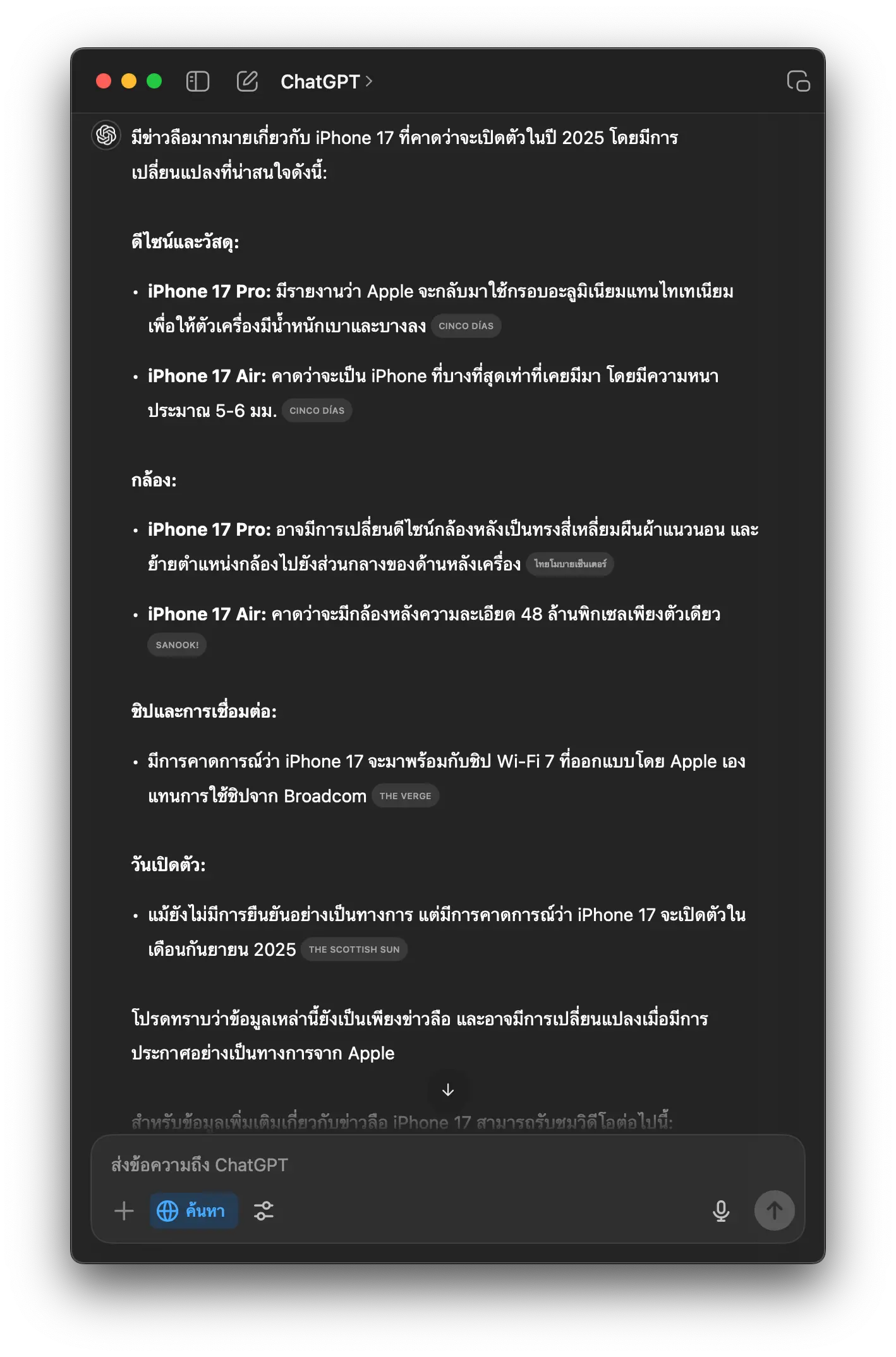 OpenAI เผยว่าได้ร่วมมือกับผู้ให้บริการข่าวและข้อมูล เพื่อให้ ChatGPT Search สามารถค้นหาข้อมูลล่าสุดในหมวดต่าง ๆ ได้ เช่น สภาพอากาศ หุ้น กีฬา ข่าว และแผนที่