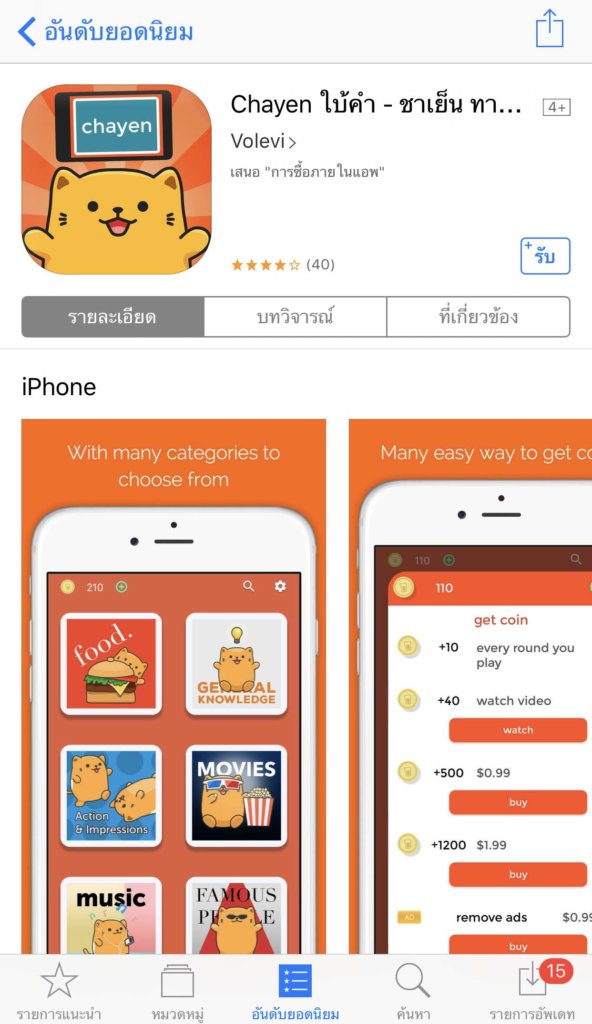 สามารถดาวน์โหลดเกม Chayen ใบ้คำ ได้ฟรีที่ App Store